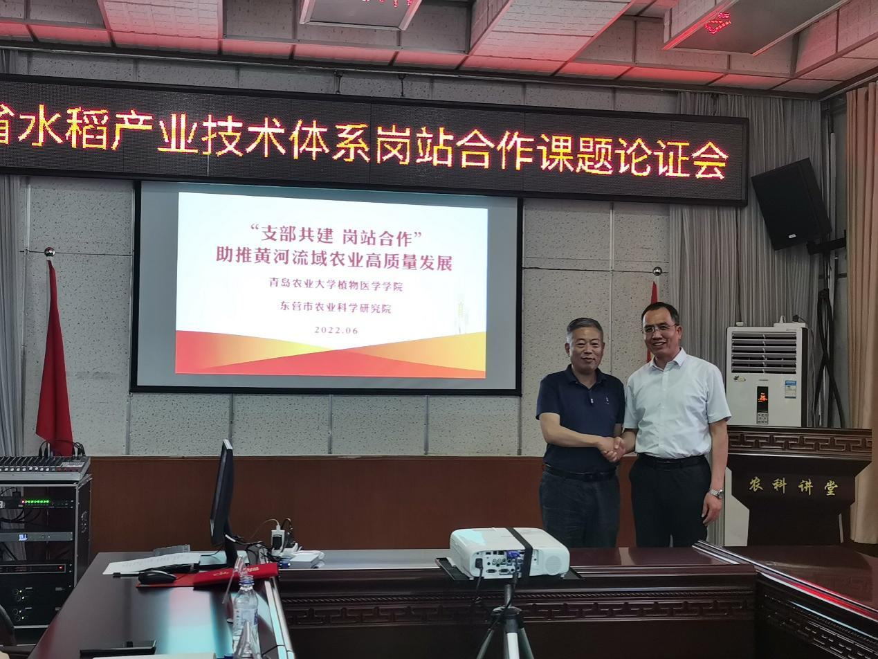 活动中,李树坤代表东营市农科院向褚栋教授颁发特聘专家证书,东营市农科院副研究员魏立兴代表耐盐作物育种与栽培创新团队就东营水稻试验站工作开展情况进行了工作汇报,双方人员围绕黄河流域生态保护和高质量发展、水稻产业区域性病虫害监测和绿色防控等开展了深入座谈和交流论证,并就下一步创新和深化“支部共建、岗站合作”形式,深入服务黄河三角洲农业高质量发展达成了进一步意向。