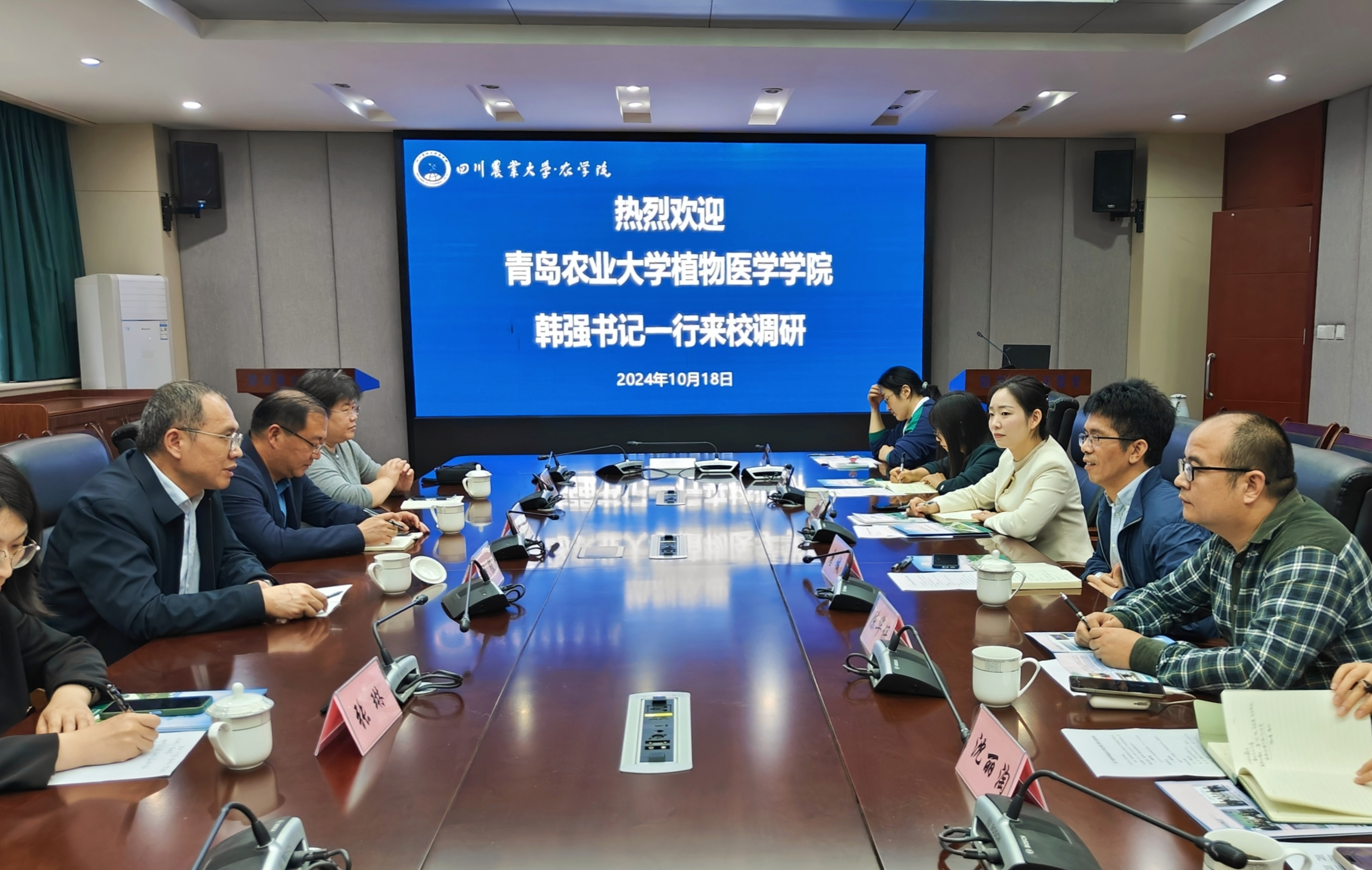 10月18日下午,公司党委书记韩强带队赴四川农业大学农公司开展调研。四川农业大学农公司党委书记唐城和公司相关负责人参加座谈交流。
