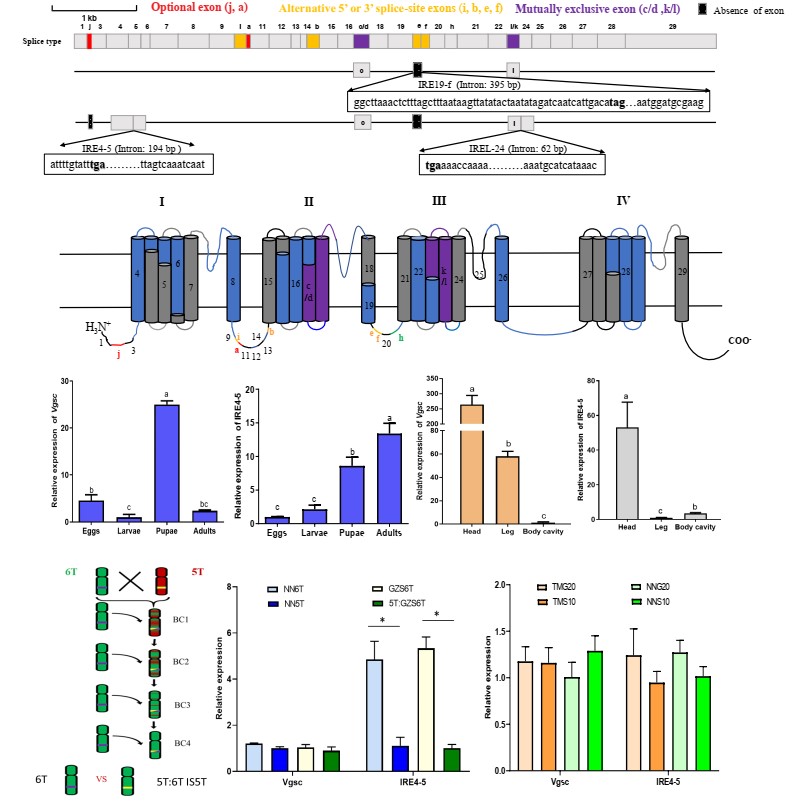 图 橘小实蝇钠离子通的内含子保留转录本及其在近等位基因系和田间抗性种群的表达