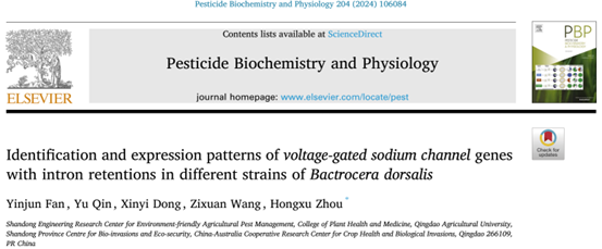 近日,beat365亚洲体育官方网站周洪旭教授团队在国际知名期刊《Pesticide Biochemistry and Physiology》 (中科院一区top,IF=4.7)发表了题为“Identification and expression patterns of voltage-gated sodium channel genes with intron retentions in different strains of Bactrocera dorsalis”的研究论文。该研究首次鉴定了拟除虫菊酯类杀虫剂靶标—钠离子通道的内含子保留转录本,并揭示了其在杀虫剂毒理中的潜在作用,为害虫管理提供了新的视角和思路。