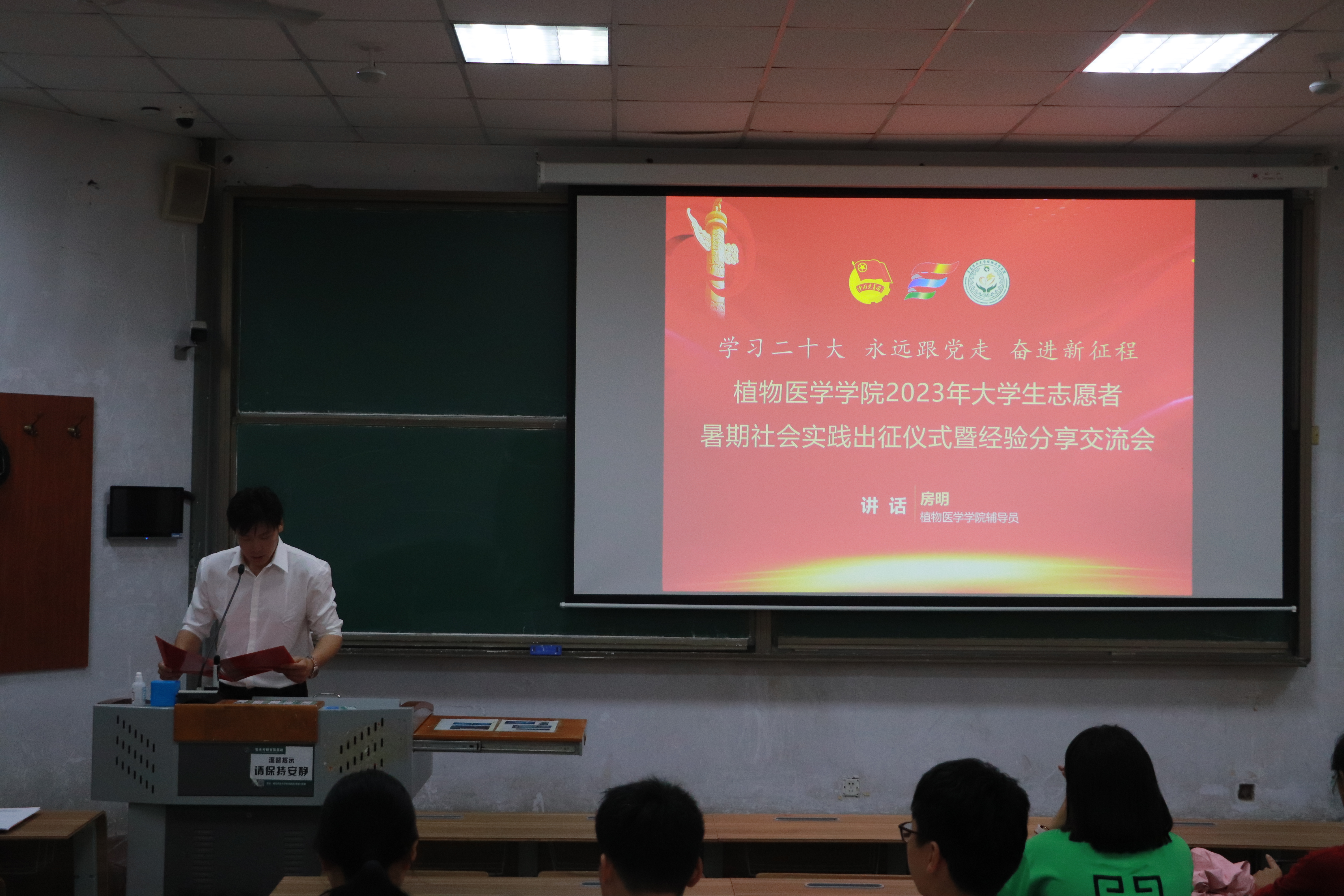 丁晨在讲话中对参加本次暑期社会实践的全体员工提出三点要求和期望:一是要学习领悟党的二十大精神关于乡村发展的相关论述及要求;二是要找准实践方向,明确实践目标,在实践中发挥青年人的作用,发挥植医学子的作用;三是要牢固树立安全第一的意识,做好充分准备,遵守纪律,服从指挥。