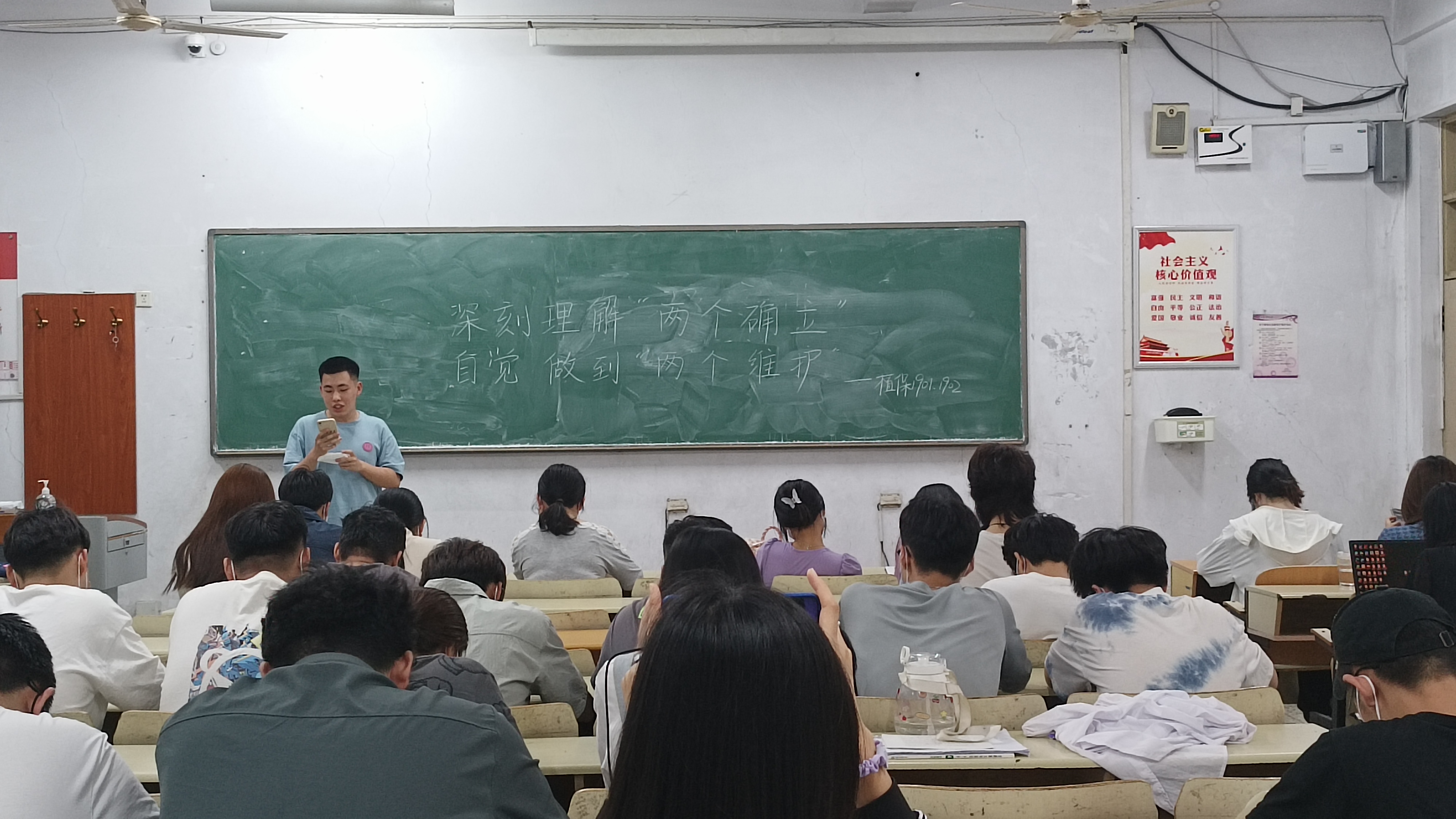 此次团课活动中,主讲人指出“两个确立”为新时代坚持和发展中国特色社会主义、全面建成社会主义现代化强国、推进中华民族伟大复兴历史进程提供根本保证。“两个确立”体现了全党共同意志、反映人民共同心声、顺应时代要求的重大政治判断,更是体现了我们党深刻总结历史经验、深入把握历史规律的高度历史自觉和强大政治定力。除此之外,主讲人还讲到,“两个确立”具有历史、理论和实践必然性,回答了我们党举什么旗、走什么路、朝什么方向前进的重大问题。坚决拥护“两个确立”和做到“两个维护”,对于把党建设成为始终走在时代前列、人民衷心拥护、勇于自我革命、经得起各种风浪考验、朝气蓬勃的马克思主义执政党,具有决定性意义。