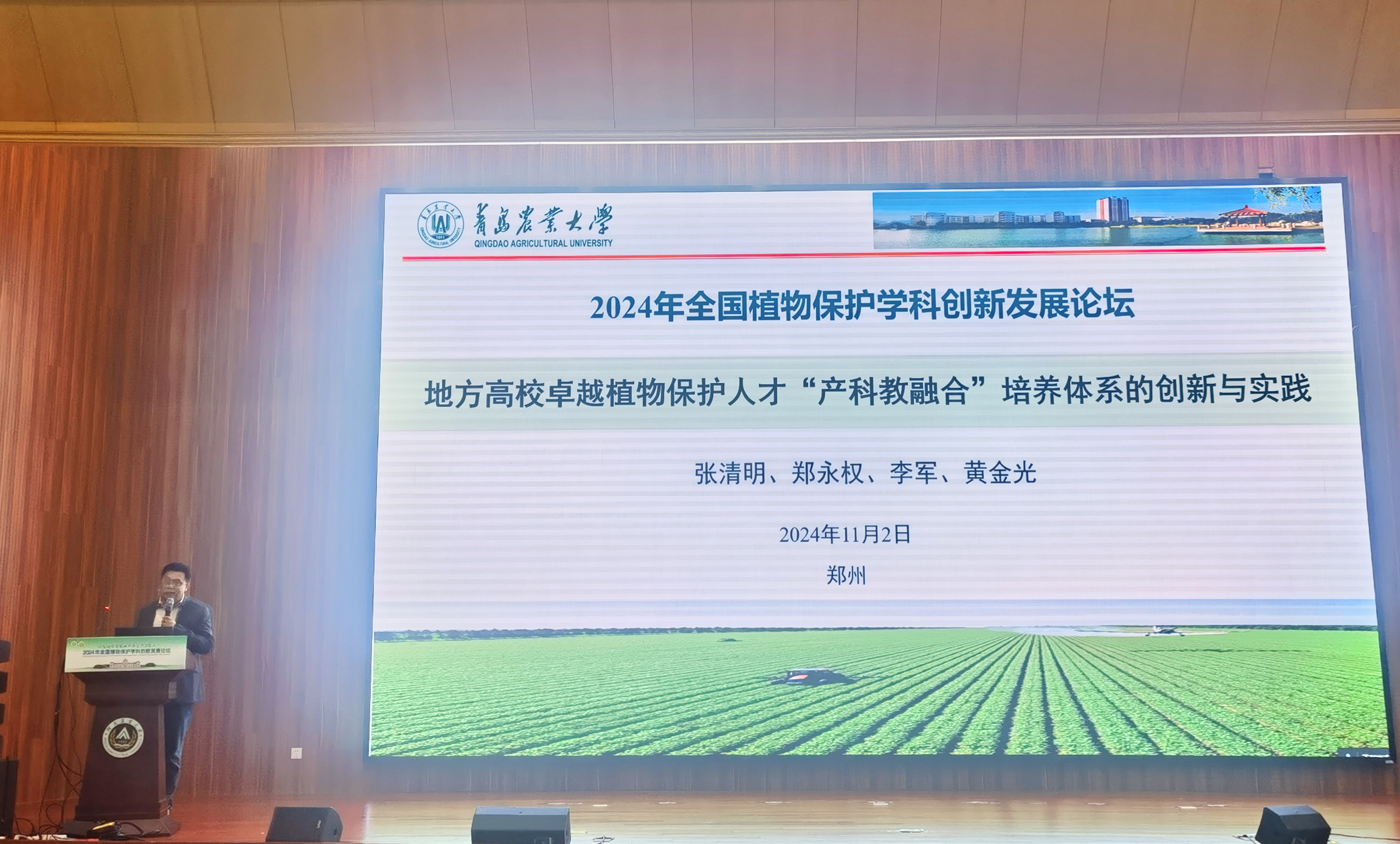 论坛会上,农药学系主任张清明教授做《地方高校卓越植物保护人才“产科教融合”培养体系的创新与实践》主题报告,他从公司人才培养体系概况、人才培养模式途径构建、分类人才培养特色、人才培养理念思路等方面介绍了公司人才培养创新与实践工作,重点介绍了公司公费农科生的教学模式改革和取得的成效。