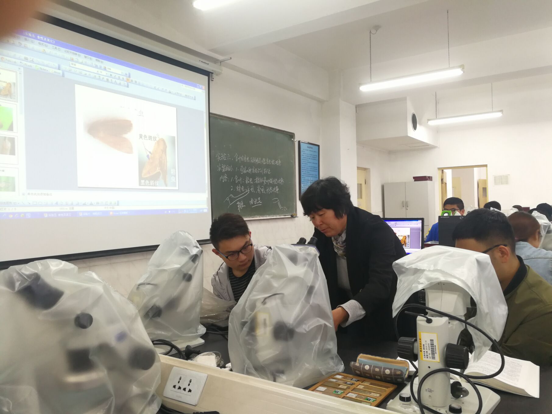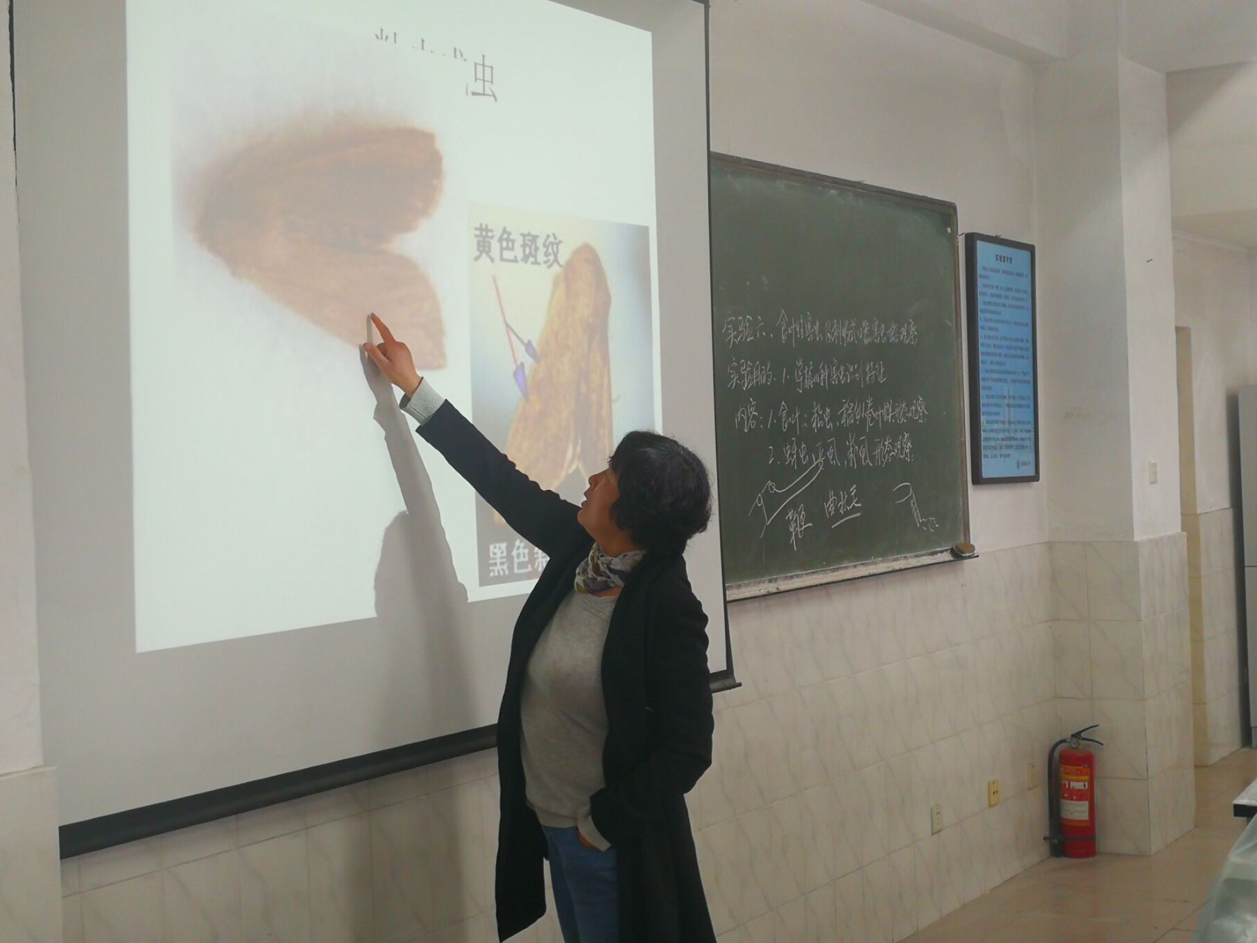 实验课教学检查是本次期中教学教学检查的重点内容之一,5月22日上午,公司领导及部分教师共同走进生物楼实验室B510,听取夏淑春老师主讲的《植物保护学》课程中昆虫刺吸式口器害虫形态特征识别等内容。课堂上夏淑春以PPT和板书结合的形式为同学们讲解刺吸式口器害虫蚜虫等关键识别特征,夏老师授课重点突出,深入浅出,内容熟悉,并能够跟同学进行互动交流。课堂前能够认真备课,协助实验员采集实验标本,并能安排员工分组采集实验材料。