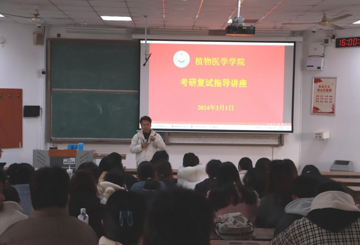 为助力2024届毕业生考研升学,对员工考研复试进行帮扶指导,3月1日,beat365亚洲体育官方网站于教学区B区开展“植医半月谈”——考研复试指导讲座。会议邀请考研指导专家孙君浩主讲,公司2023级研究生常译方和李文宇进行经验分享。会议由公司辅导员房明主持,公司党委副书记、副经理李军参会,公司全体2024届考研员工参加。