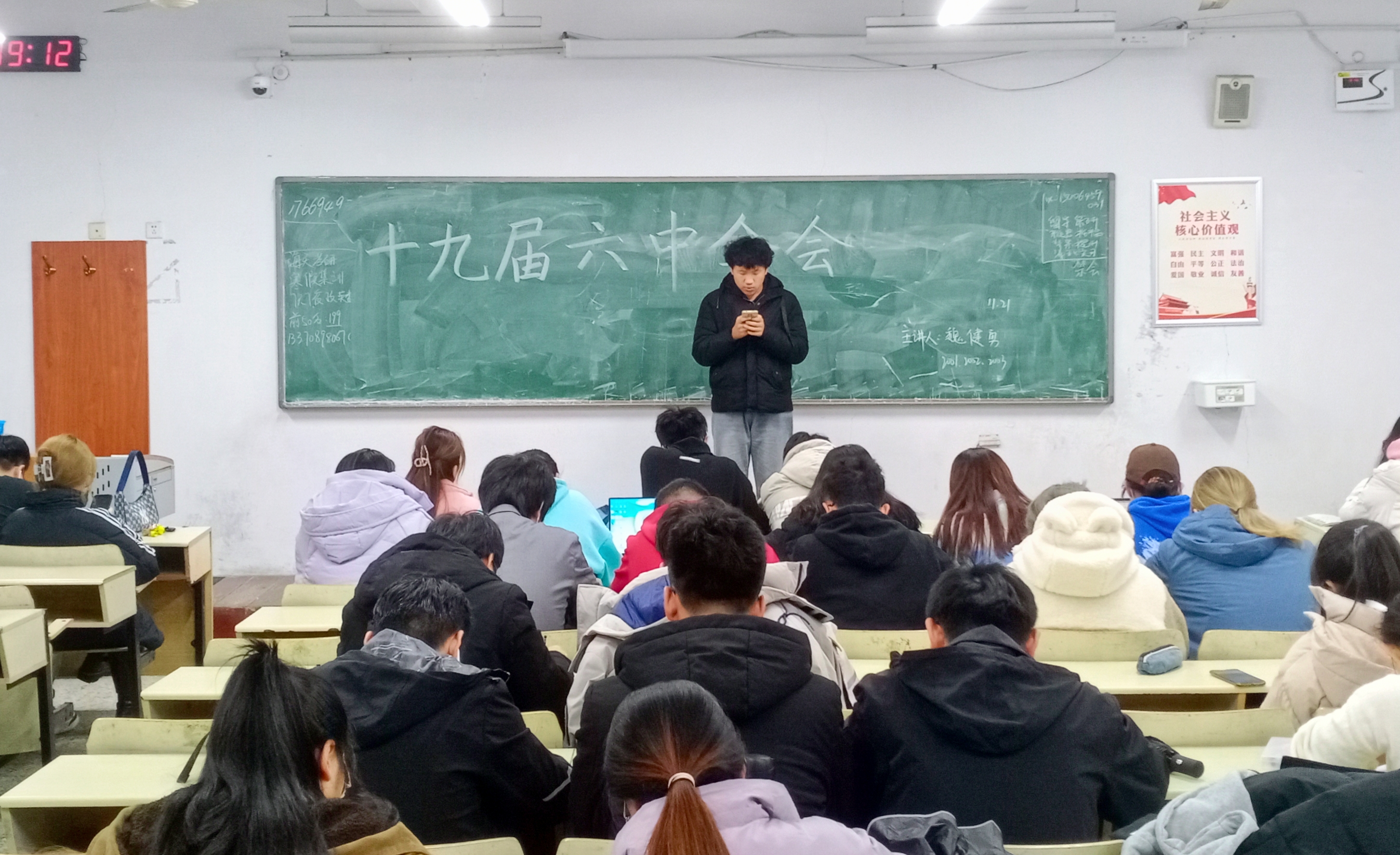 为学习贯彻党的十九届六中全会精神,深刻认识十九届六中全会的重大历史意义,以高度的思想自觉、政治自觉和行动自觉推动全会精神落地落实,11月21日,beat365亚洲体育官方网站在教学区开展学习党的十九届六中全会精神主题团课活动,2019、2020级全体同学参加。
