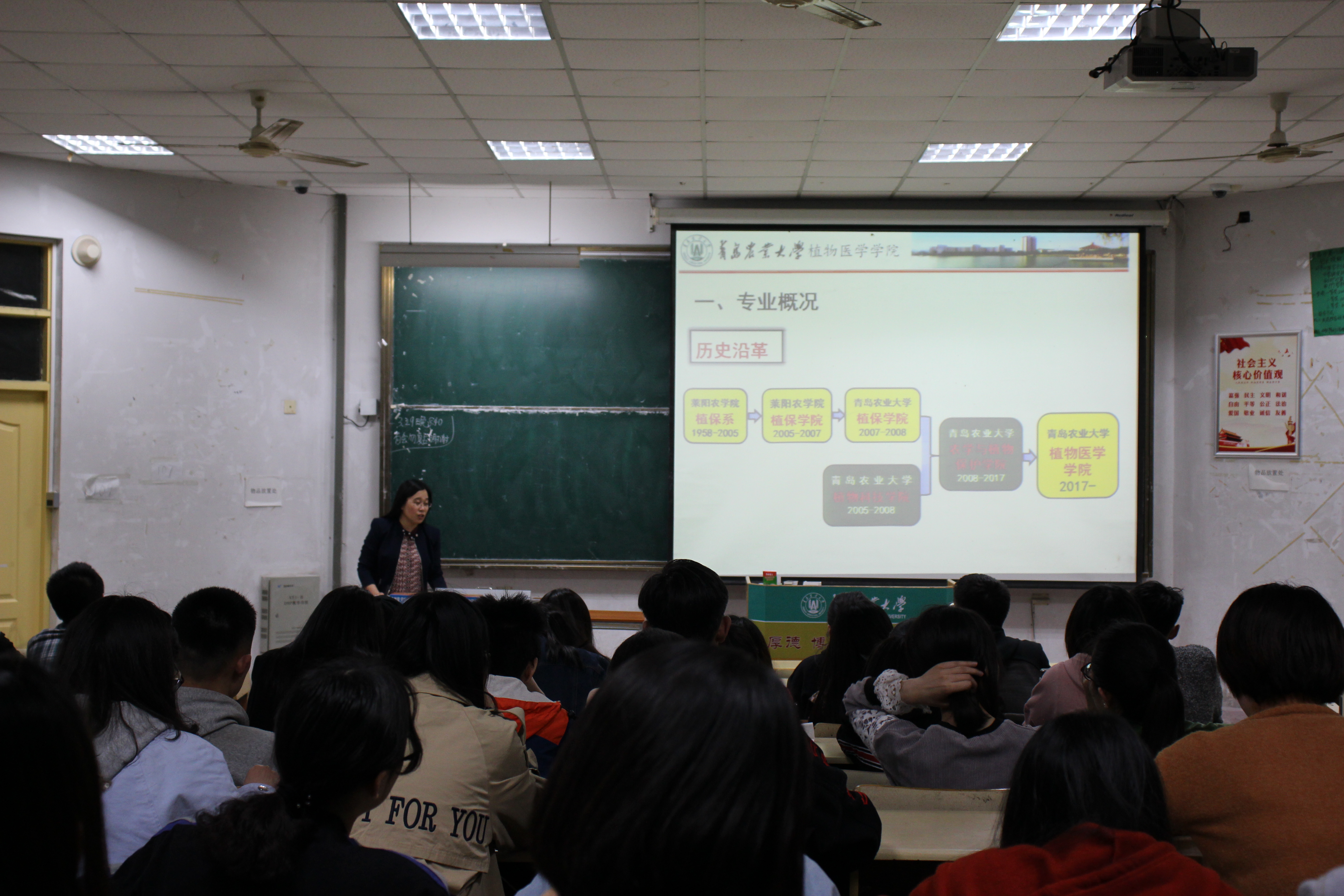 会议上,王彩霞向同学们做植保专业主题报告,从团队队伍、学员定位、教师条件、人才培养、主要成果五个方面向同学们介绍了植物保护专业的情况和发展前景,并运用事实例子,从老师科研立项成功到员工考研率、就业率的不断提升,充分展示了公司成果和特色。