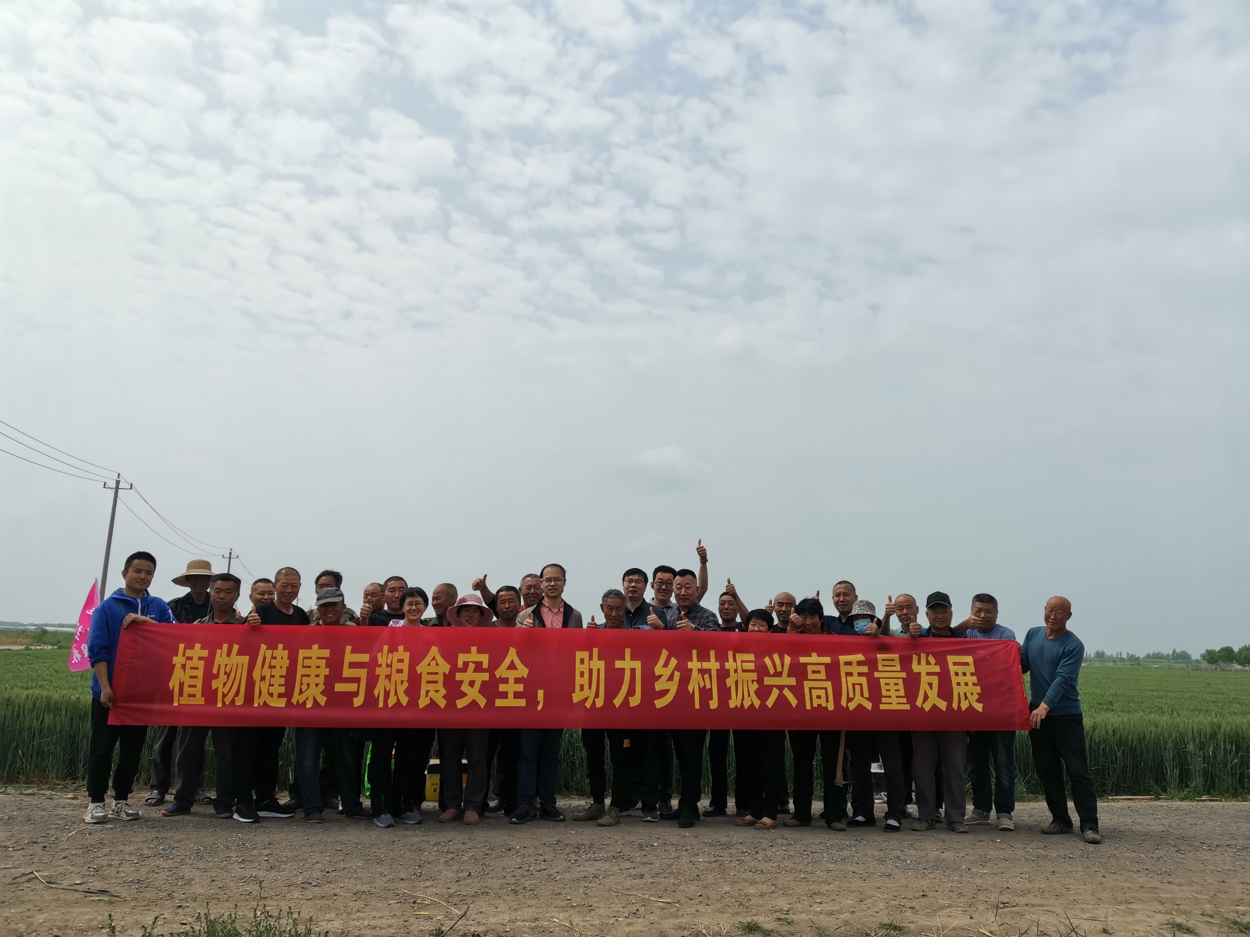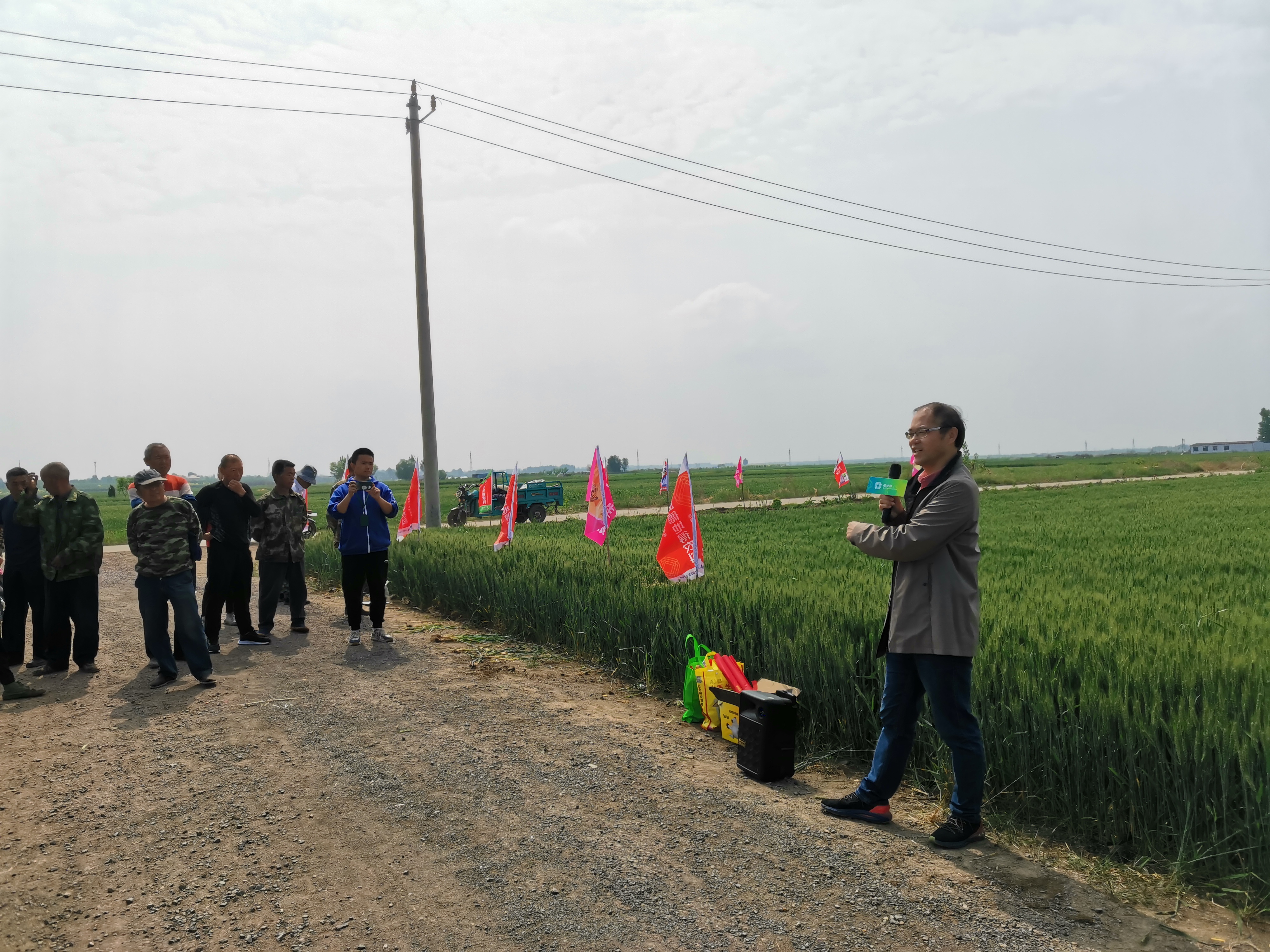 为深入贯彻落实习近平总书记在中央农村工作会议及在山东考察时的系列重要讲话精神,进一步提高保护植物健康对消除饥饿、减少贫困、保护生物多样性及推动绿色发展重要意义的认识,围绕农业高质量发展中病虫草害绿色防治等关键问题开展诊断和防治技术培训,旨在宣传植物健康保护,减轻灾害风险,守护美好家园,进一步夯实“三农”压舱石,为夺取全省夏粮小麦丰收提供科技支撑。5月12日上午,beat365亚洲体育官方网站副经理黄金光教授带领小麦绿色防控团队成员一行3人到即墨市段泊岚镇麦戈庄小麦示范田开展“植物健康与粮食安全,助力乡村振兴高质量发展”培训指导,青岛德地得农化科技服务有限公司小麦技术方案推广员、段泊岚镇种粮大户负责人等40余人参加了活动。