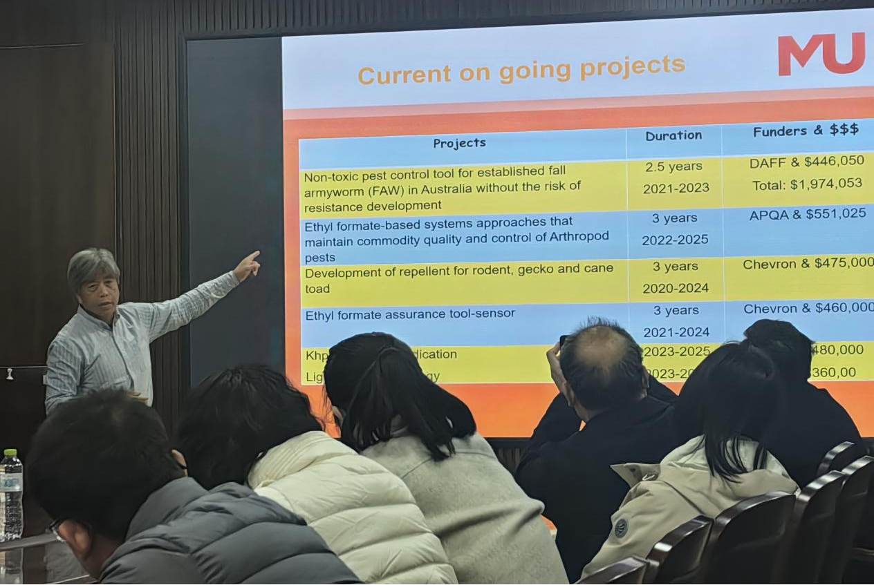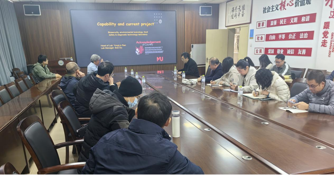 Ren教授结合自身关注领域和研究内容进行了细致讲解,通过可见光近红外高光谱成像技术结合机器深度学习在生物安全风险识别与诊断新应用的案例,深度剖析了新技术、新设备在现代生物安全检测、监测和防控中发挥的重要作用,提出了通过采集高光谱图像结合大数据分析能更加有效进行病原的分类鉴定和早期精准诊断等观点。此外,Ren教授阐述了澳大利亚生物安全的研究现状、检验检疫等相关内容,并与公司师生就目前生物安全领域的研究热点和难点展开深入探讨和广泛交流。