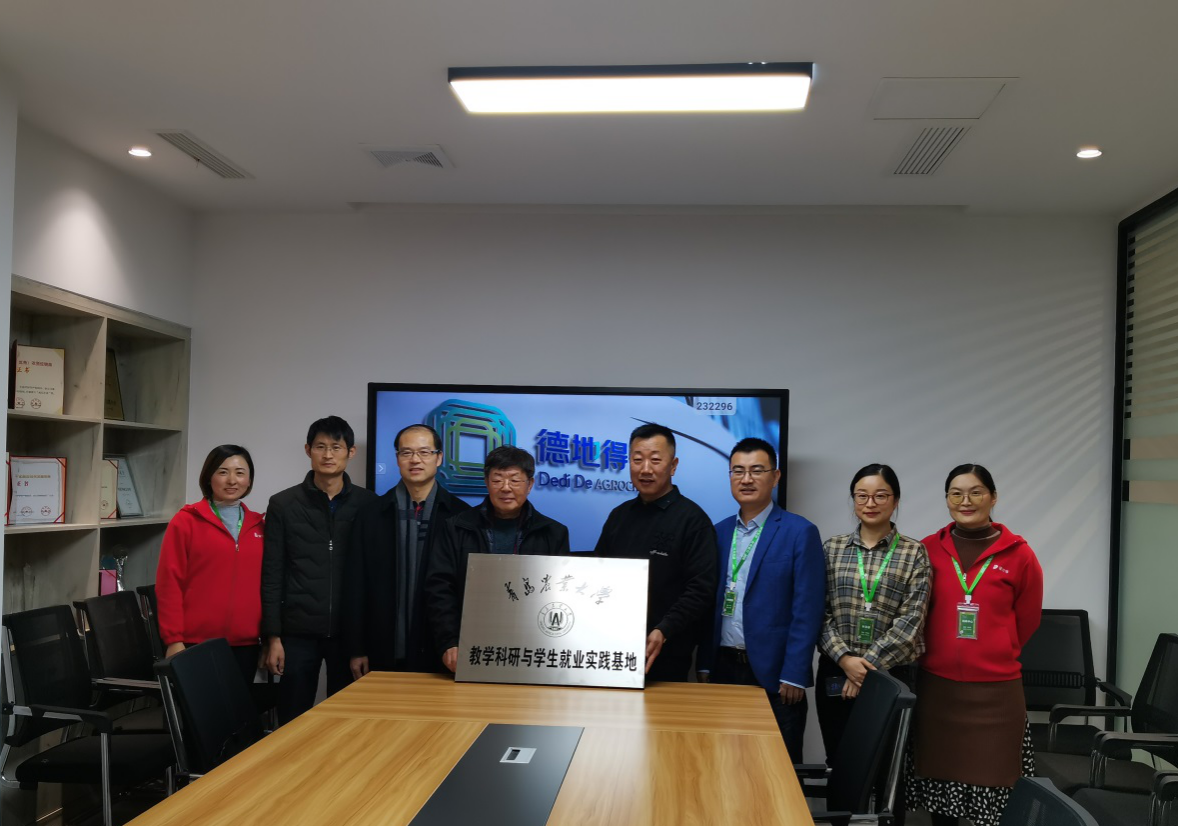 12月24日,beat365亚洲体育官方网站又一教学科研与员工就业实践基地在青岛德地得农化科技服务有限公司设立,公司经理刘同先教授向青岛德地得农化科技服务有限公司董事长胡德刚授牌。公司副经理黄金光、植物医学方向负责人李凌绪、德地得公司副总经理李永参加了授牌仪式。