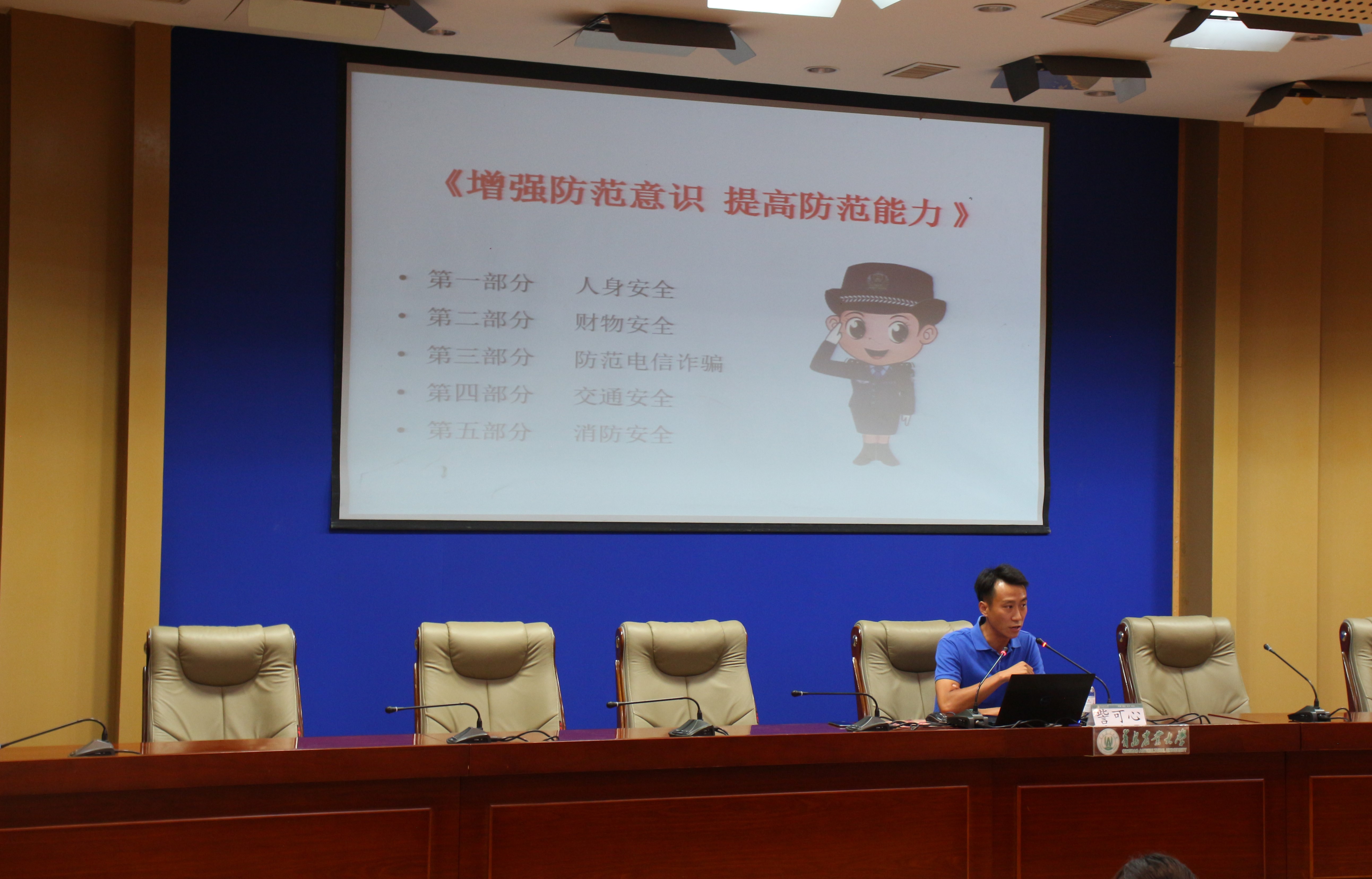 为提高新生安全防范意识,创建安全校园。9月14日,beat365亚洲体育官方网站于学术会馆第一报告厅召开了2020届新生安全教育报告会。保卫(部)处治安科科长訾可心主讲,2020级全体新生参加会议。