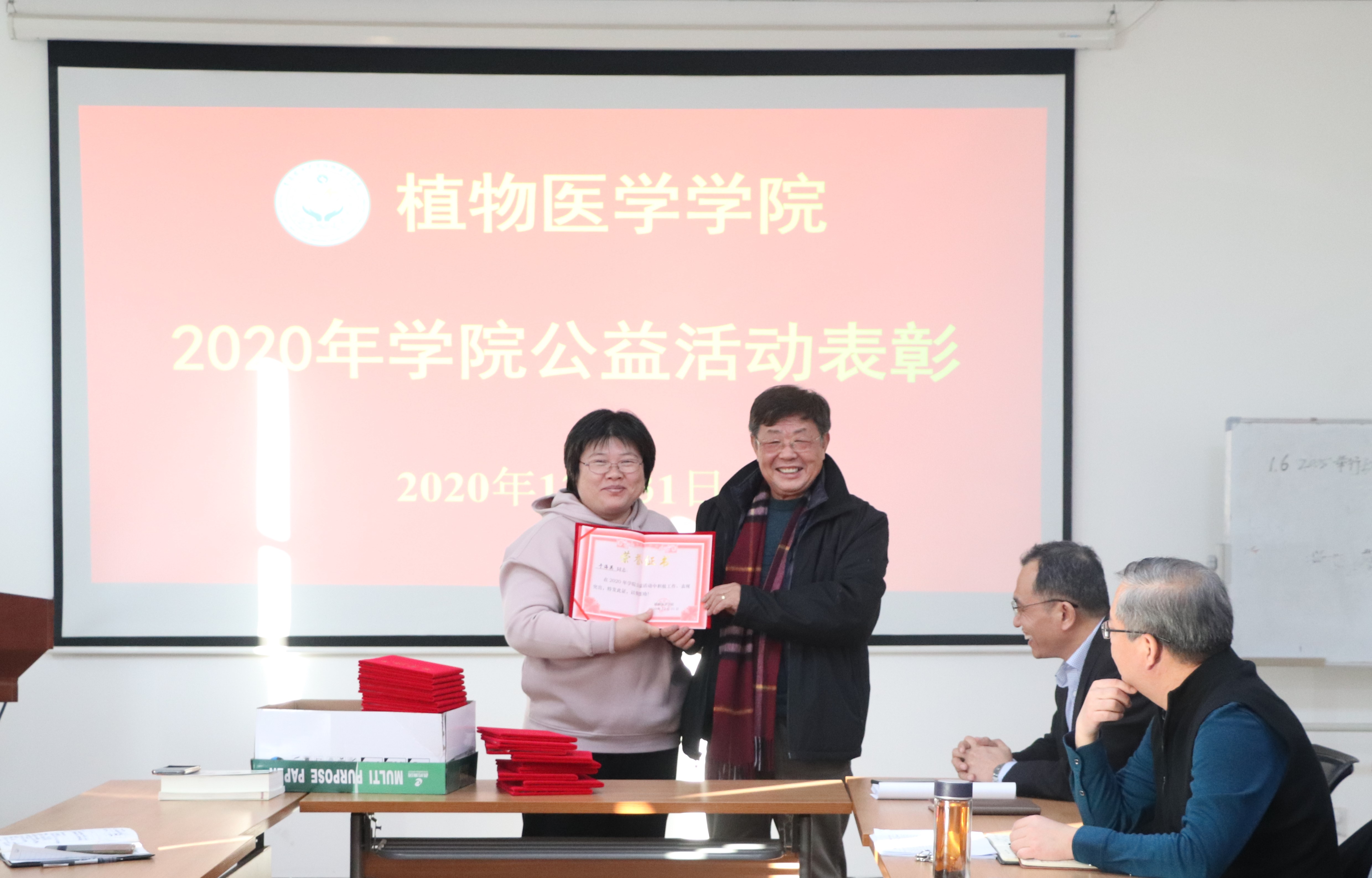 会上,韩强总结了2020年公司教职工在疫情防控、体育赛事、博士点申报、一流专业申报、第五轮学科评估、青年教师学术论坛等活动中所展现的专业、团结、无私的植医精神风貌。并宣读获奖教职工名单,刘同先为其颁发荣誉证书。
