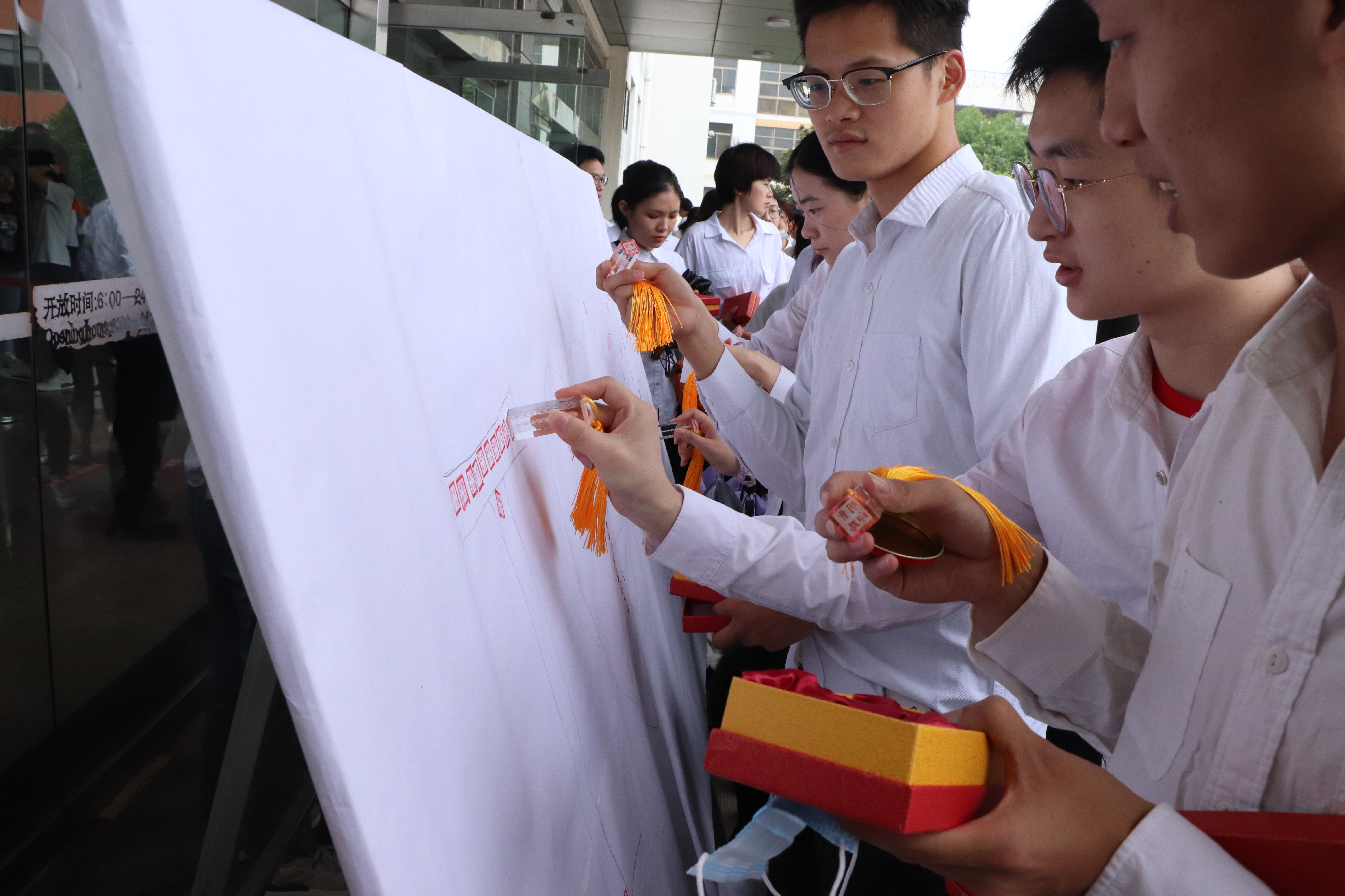 伴随着淅沥小雨,毕业生们在主楼前排好队,与老师们合影留念,韩强,刘同先为毕业生们分发了印有“beat365亚洲体育官方网站”院徽和个人名字的印章。生物楼前,全体毕业生手持个人印章,在空白的板报上印下了属于自己的名字,一个个印章汇成了“我爱植医”四个字。随后,毕业生与老师们互相道别,与同学们彼此拥抱,用属于他们的方式表达对母校,对老师同学们的留恋与不舍。活动期间,毕业生们表示十分感谢公司精心准备的毕业礼,认为此次活动的举办非常有意义。同学们表达了对母校的不舍,表示无论是继续升学进修还是工作,无论身处何方,都会一直关心母校发展,与母校保持密切联系,常“回家”看看,并承诺一定会谨记“厚德、博学、笃行、致远”的校训和“勤奋、严谨、求实、创新”的校风,牢记公司的恩情和嘱托,不负公司的期望,刻苦努力,勤力进取,创造出属于自己的美好未来。