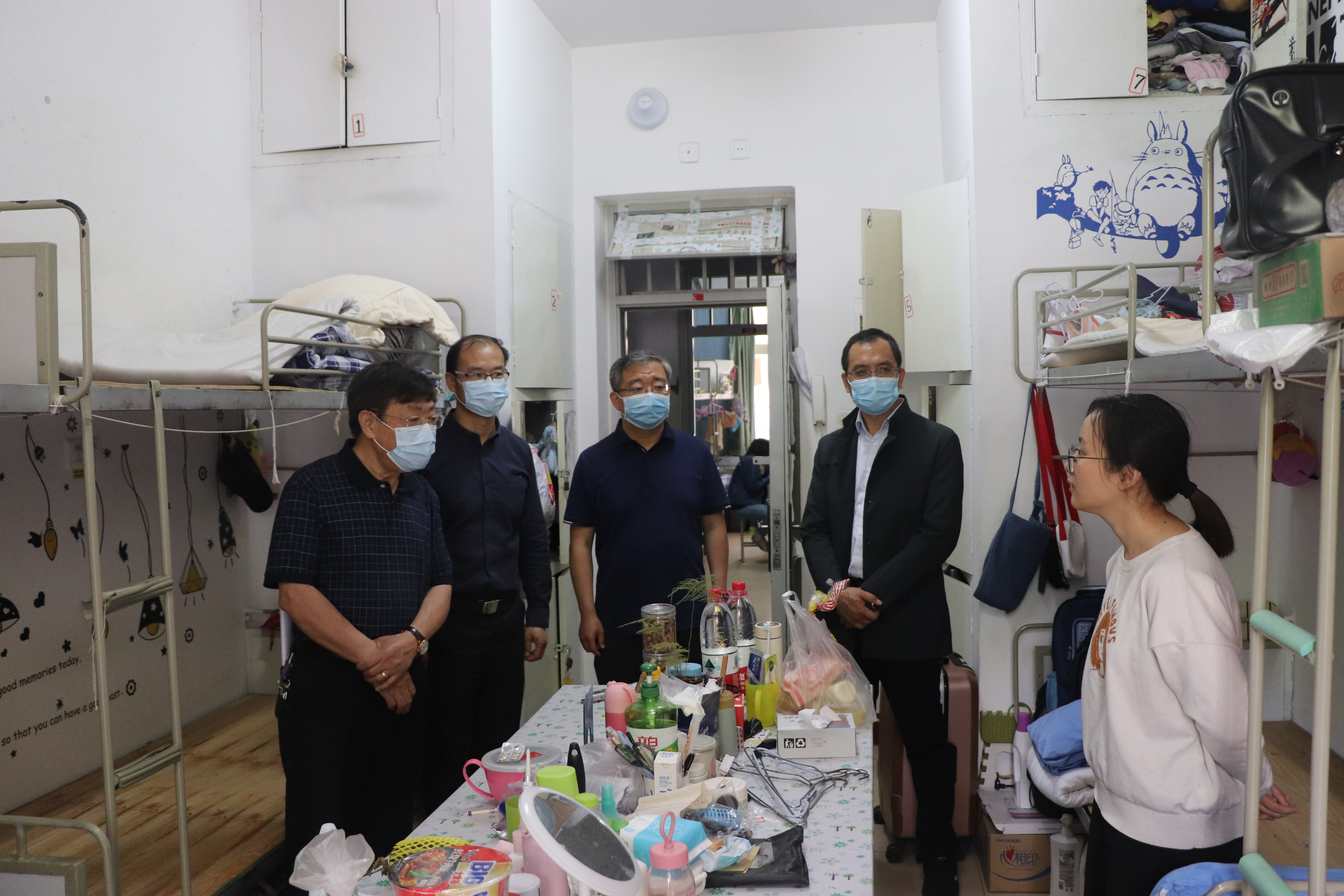 为切实做好新冠肺炎疫情防控工作,加强宿舍安全管理,确保第一批返校生顺利返校, 5月27日,公司党委书记李宝笃,党委副书记单连岱,学工部(处)长王清春走进beat365亚洲体育官方网站宿舍看望第一批返校生,送去公司的慰问和关心。公司党总支书记韩强,经理刘同先,副经理、党总支副书记李军,团委书记王丽静,辅导员丁晨等陪同走访。
