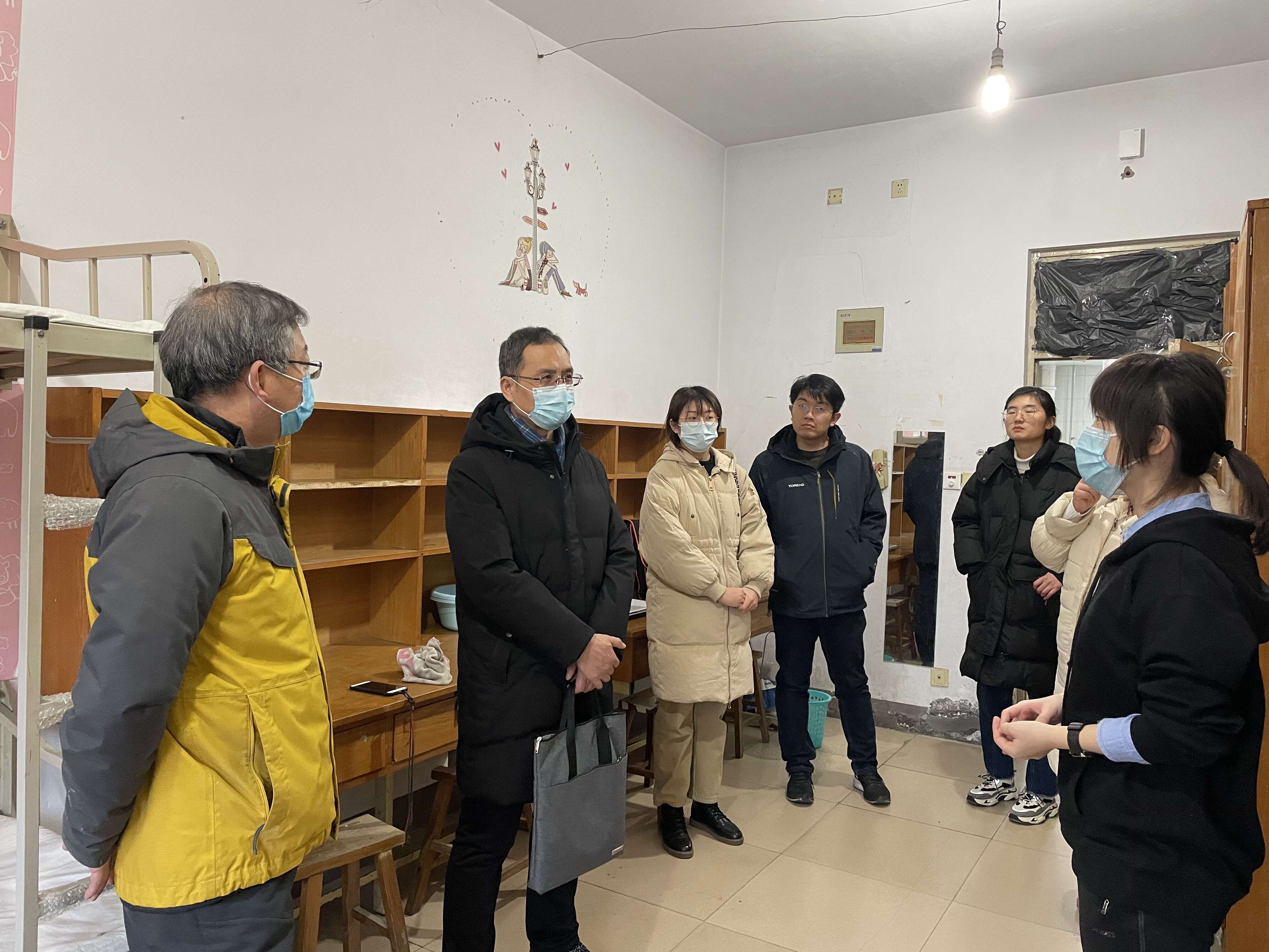 此次走访还深入留校研究生宿舍,了解研究生留校原因及因家处疫情中高风险地区而留校过春节的基本情况,了解他们的科研生活情况,详细排查了宿舍存在的安全隐患,对留校员工进行提醒督促,要求留校员工寒假期间注意用电安全,严格遵守宿舍管理制度,确保疫情期间自身及他人安全。