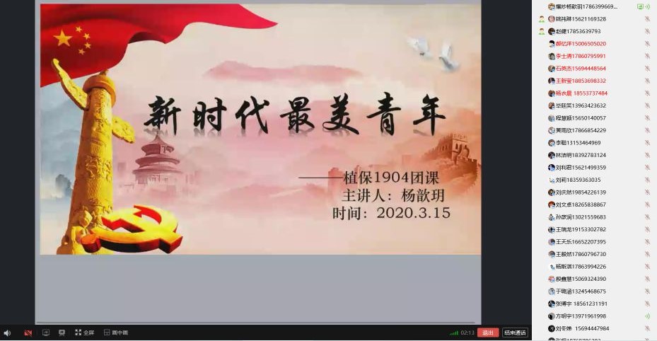 本次团课是公司疫情期间开展的第一次主题团课,公司各团支部将以线上团课的形式,将每周周日晚团课常态化,通过组织广大团员青年开展各类主题学习,增强团员青年的责任感和使命感,激发团员青年的爱国之情,激励广大团员青年要更加奋发向上,积极进取,努力学习,为疫情防控工作贡献出自己的青春力量。