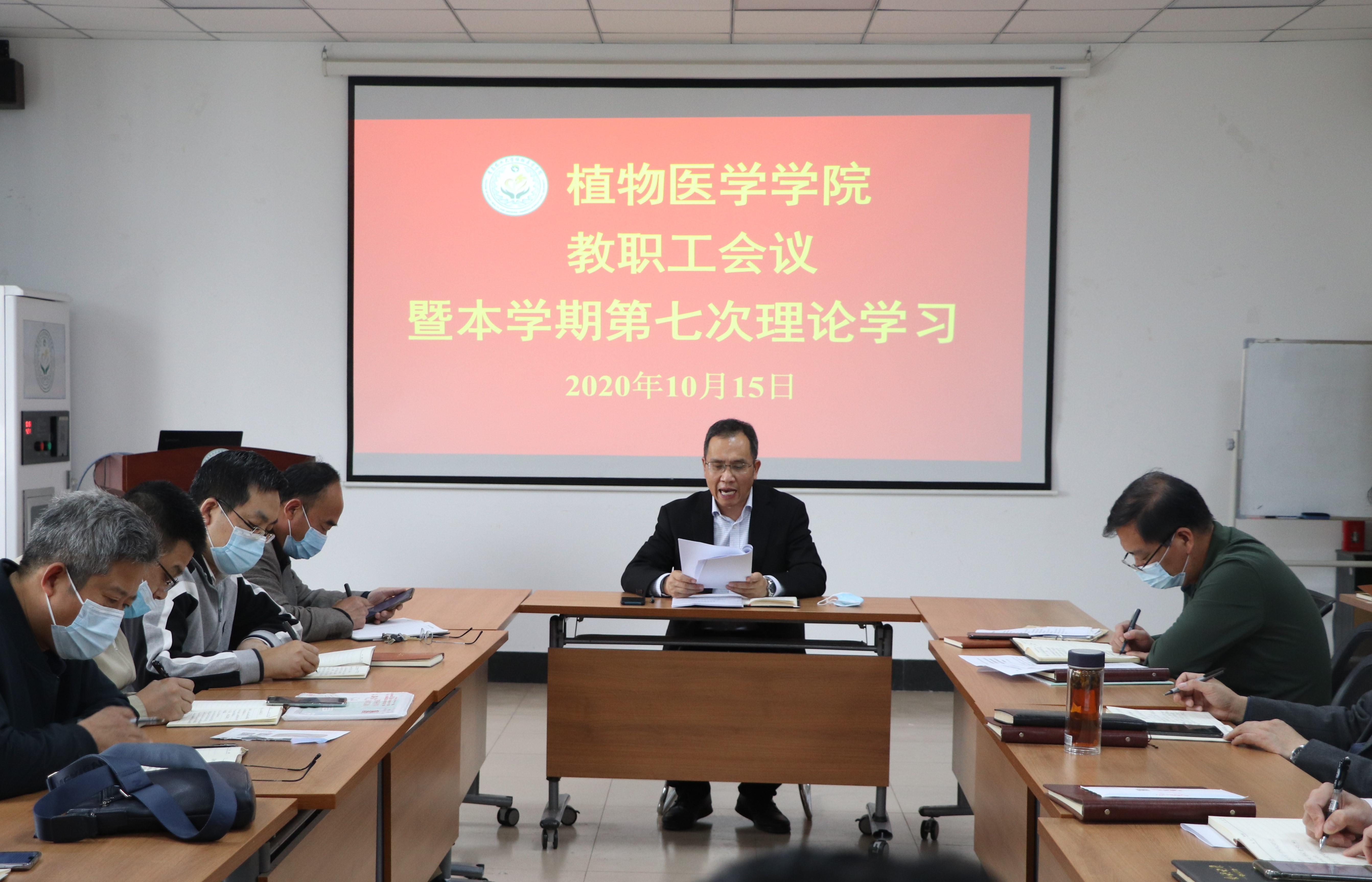 10月15日下午,beat365亚洲体育官方网站在生物楼N406召开全体教职工会议暨本学期第七次教职工理论学习,公司党政领导班子成员和公司全体教职工出席会议,会议由公司党总支书记韩强主持。
