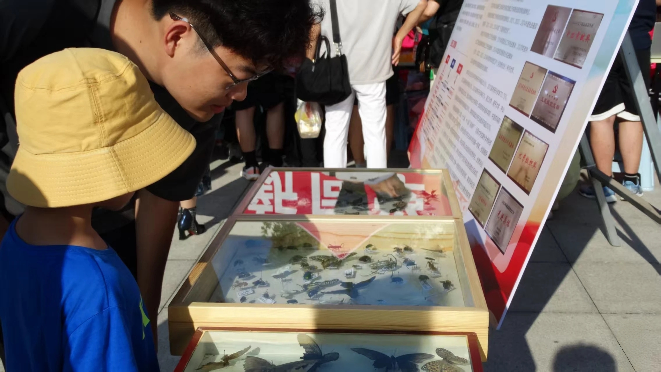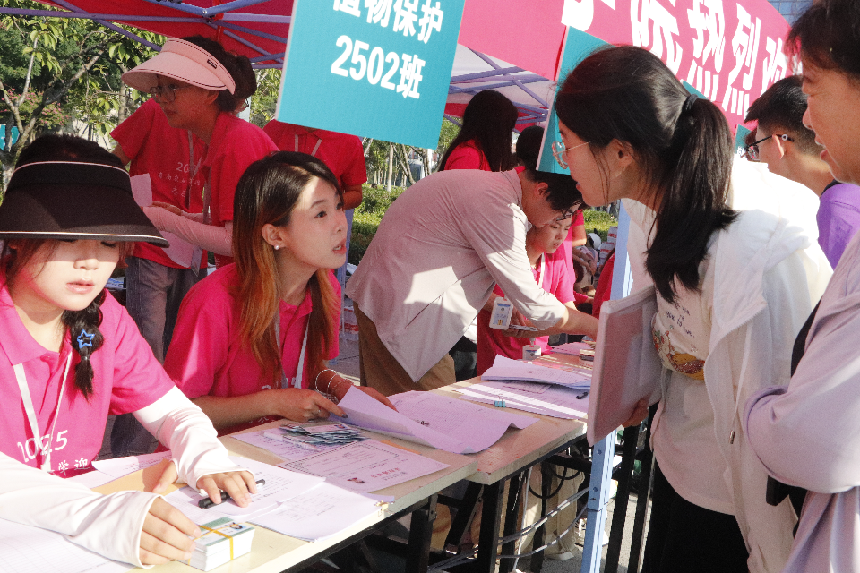 迎新现场,志愿者们以蓬勃的朝气和专业的素养,为新生提供从报到注册到宿舍安置的一站式服务,全程热情细致,让新生们刚入校园就感受到家的温暖。他们有的是连续三年参与迎新的“老兵”,有的是刚接过接力棒的“新人”,但都怀着同样的热忱,带新生参观校园,让新生们对专业学习充满期待。“植物病虫害标本展区”“公司特色拍照立牌”前,志愿者为新生及家长详解专业内涵与行业前景,一个个形态各异的昆虫标本生动展现了植物医学学科的独特魅力。