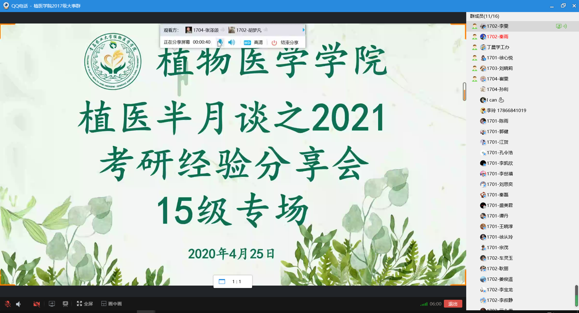 本次考研经验分享会,通过四位学长学姐的考研经验分享,使同学们对考研过程有了一个更系统、更清晰的认识,为同学们提供了明确的复习方向,对2017级考研同学具有指导意义,使同学们进一步认清当前形势,坚定考研奋斗目标,增强考试信心。本次植医半月谈之考研经验分享会为考研专场第三场,后期公司还会邀请多位优秀毕业生及导师进行经验分享,全面做好员工的考研指导工作。
