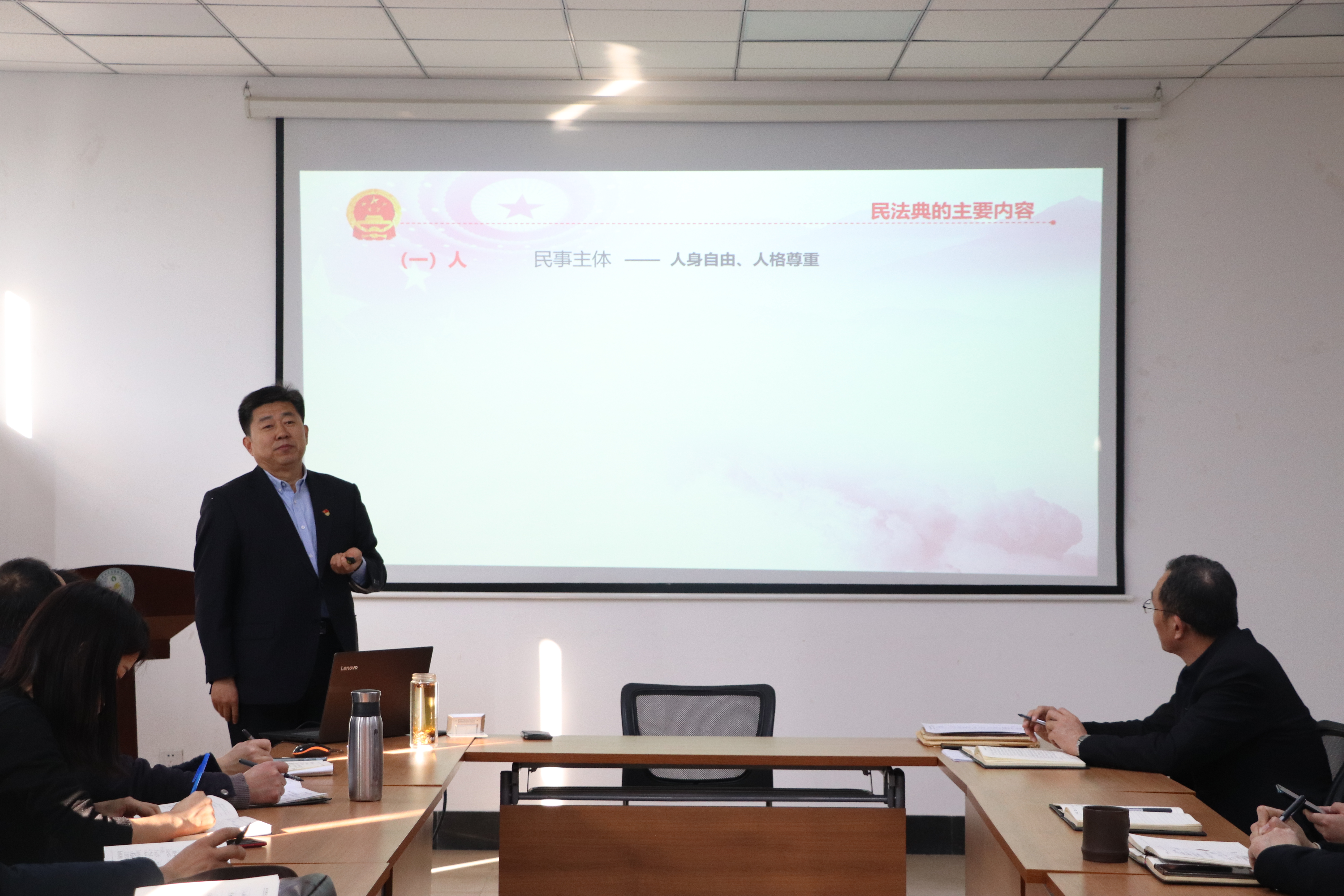 为深入学习贯彻党的十九届五中全会精神和习近平总书记在十九届中央政治局第二十次集体学习时的重要讲话精神,积极落实“12.4”国家宪法日和全国宪法宣传周活动要求,进一步提升教师的法治意识和法治思维能力,12月3日,beat365亚洲体育官方网站于公司会议室举行《民法典》专题报告会,邀请经济公司(合作社公司)党委书记、公司法律事务办公室主任陈锦铭教授作“学法用典,教书育人–民法典与大学的我们”专题报告,公司全体教职工参加,报告会由公司党总支书记韩强主持。