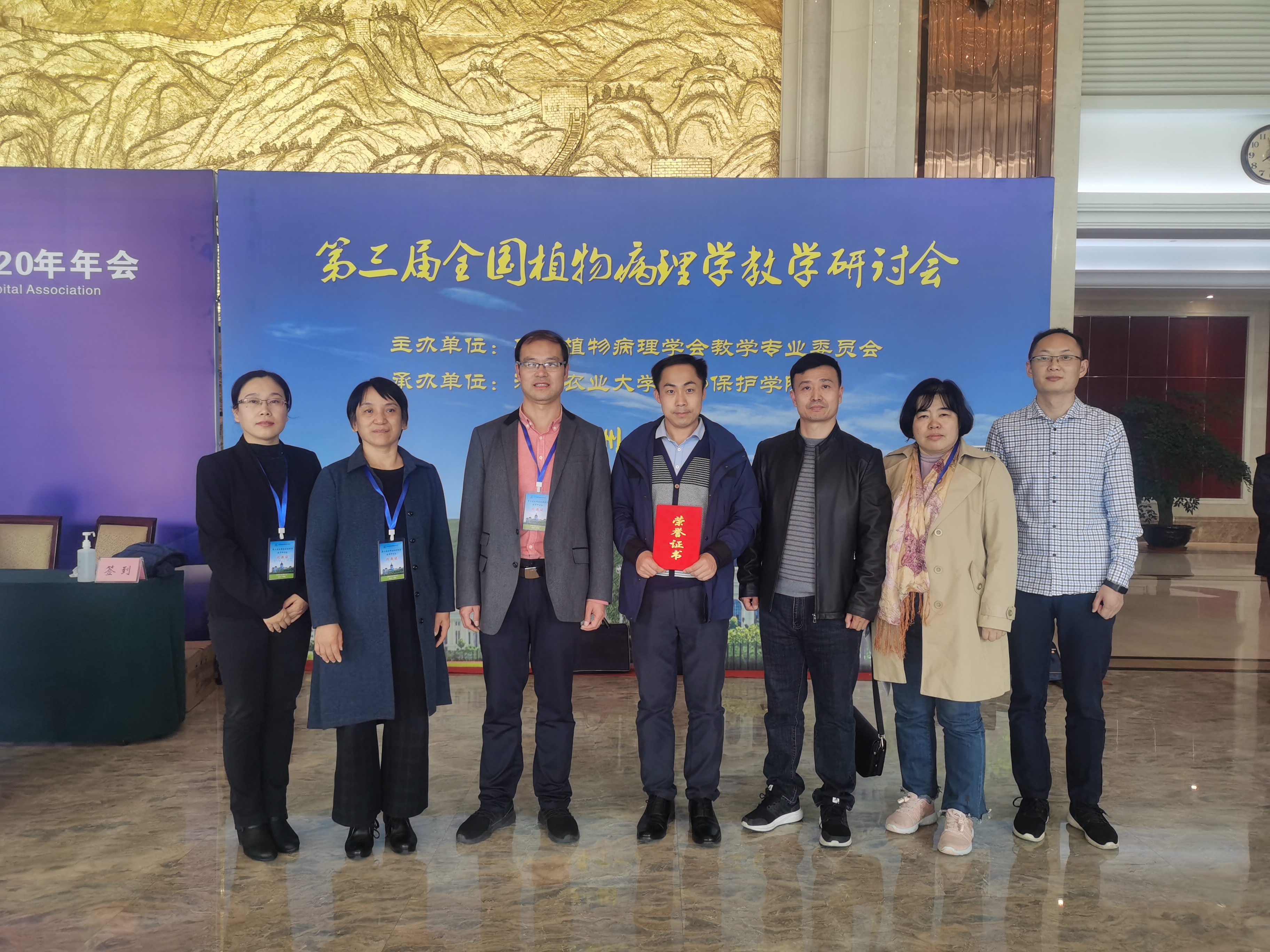 2020年11月10日-13日,由中国植物病理学会教学专业委员会主办,河南农业大学承办的第三届全国植物病理学教学研讨会在郑州召开。来自全国43所高校的植物病理学科带头人、课程负责人、青年教师等近200人参会。公司副经理黄金光带队,植物病理学系7名教师参加了会议。在青年教师教学基本功交流会上,公司李德龙副教授获得教学比赛二等奖。青年教师教学基本功交流会环节,共有来自全国从事植物病理学教学的青年教师40余人参加教学比赛,设一、二、三等奖和优秀奖,其中一等奖6人,二等奖10人。李德龙老师扎实的专业知识、严密的教学组织、鲜明的教学特点都给评委老师留下了深刻的印象。
