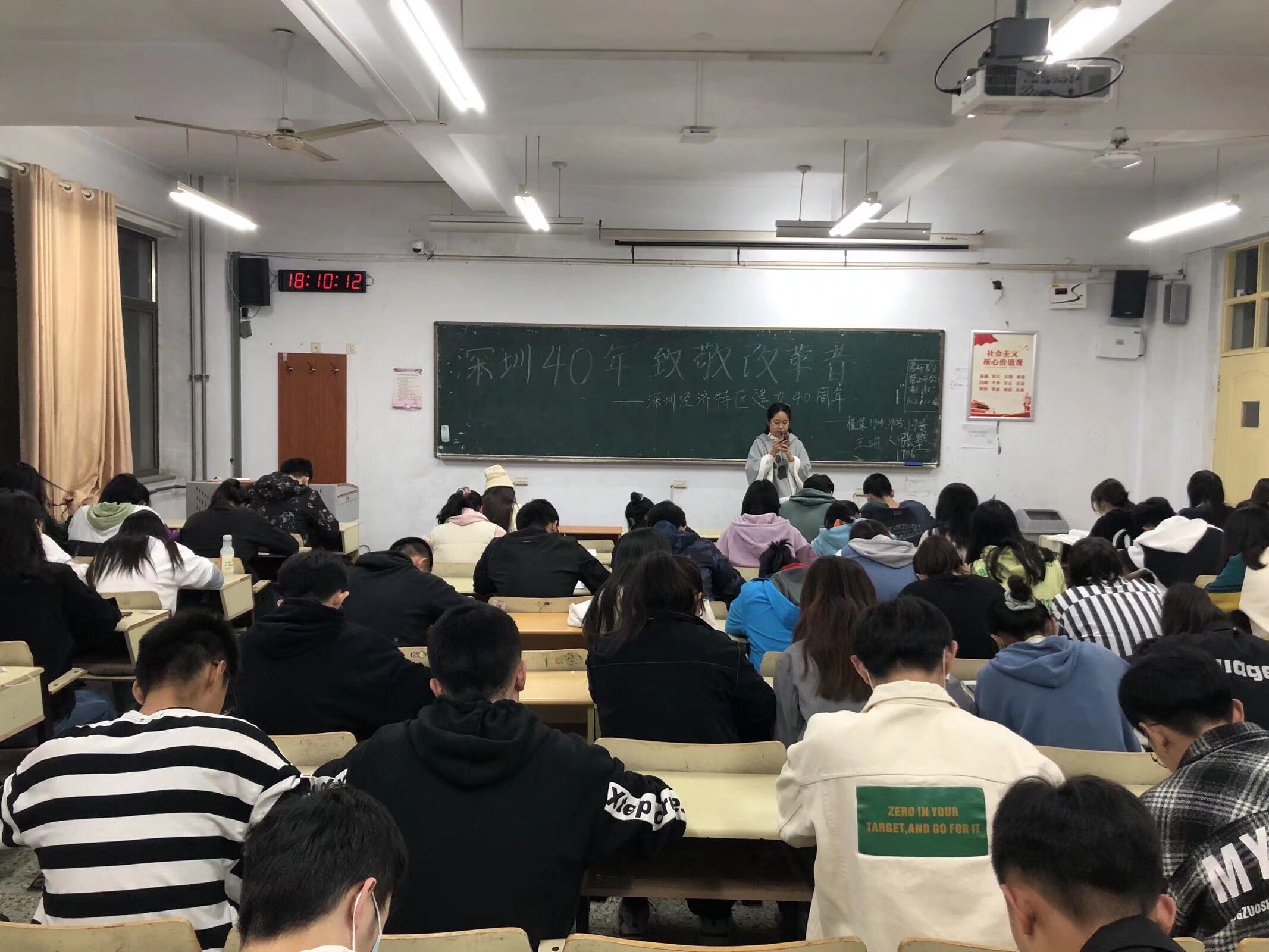 2020年是深圳经济特区建立40周年,也是深圳建设中国特色社会主义先行示范区全面铺开、纵深推进的关键之年。在团课学习中,同学们通过观看视频和听取专题讲授,回首经济特区建设之路,看到了波澜壮阔的时代画卷,也看到了翻涌浪花的个体拼搏。一代代“深圳人”的努力和奉献,助推了“深圳速度”,见证了深圳变迁,也为深圳的未来图景打下了铺垫。经济特区的建立需要新时代的人们一往无前的奋斗姿态和风雨无阻的精神状态,处在关键时期的新一代青年人应当主动承担起肩上的重任,为实现第二个百年奋斗目标做出新的巨大贡献。