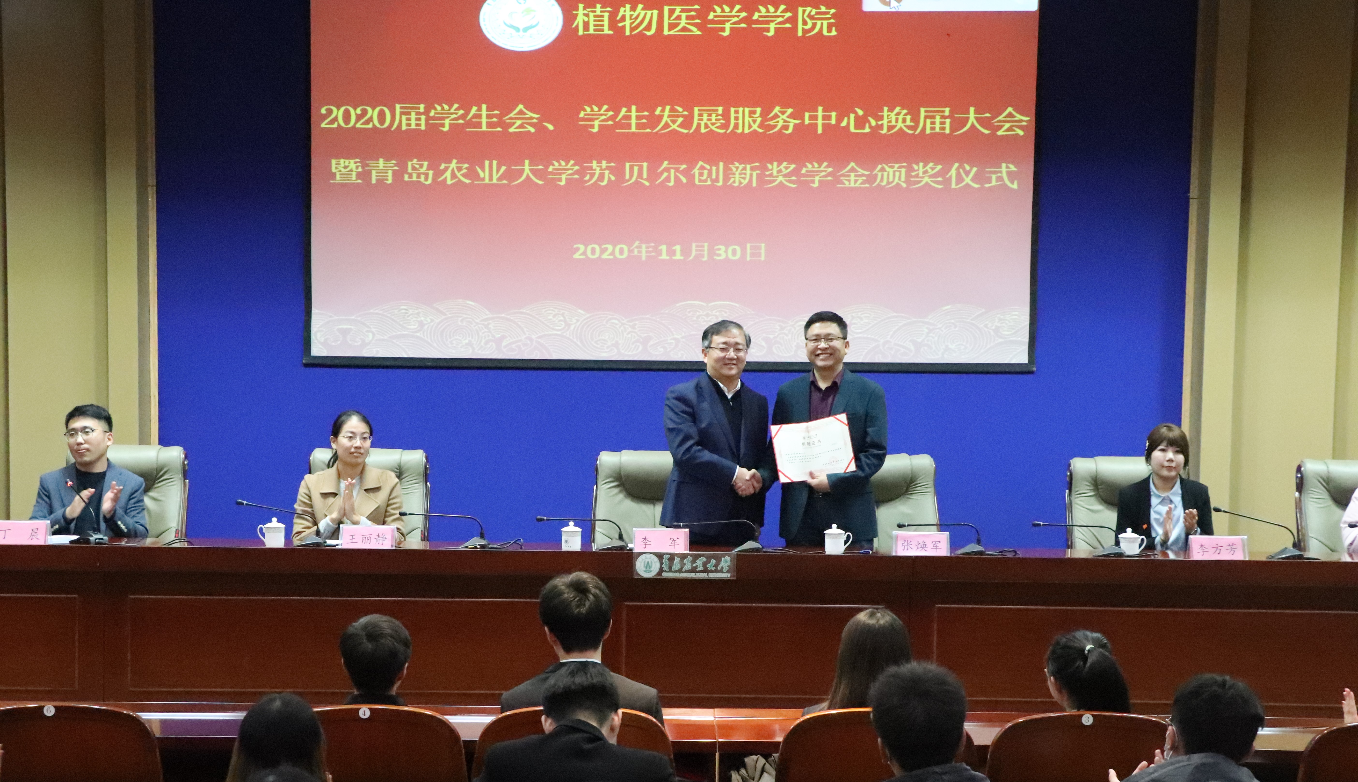 11月30日,2020届员工会、员工发展服务中心成立大会暨苏贝尔创新奖学金颁奖仪式在学术会馆第一报告厅举行,苏贝尔作物营养有限公司副总经理张焕军、人事经理李方芳,公司党总支副书记、副经理李军,团委书记王丽静,辅导员丁晨、姚延珠,兼职辅导员毛文玉、闫昊出席会议,2018级、2019级员工干部及2020级全体同学参加,会议由丁晨主持。