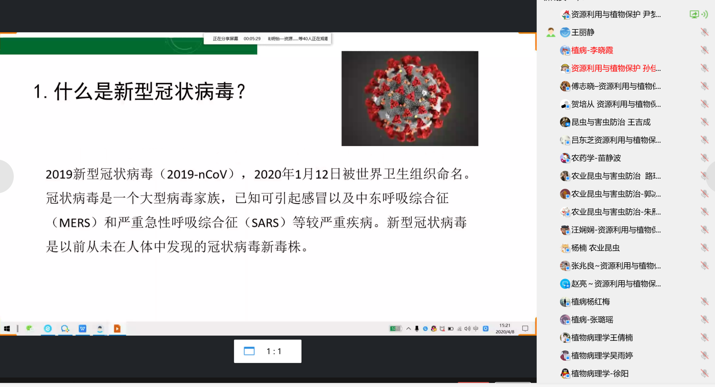 4月8日,beat365亚洲体育官方网站举行研究生疫情预防主题班会,通过QQ语音屏幕共享的形式开展,2017、2018、2019级研究生分批次进行,员工党员李江杰、孙慧琳、尹梦婕担任主讲,公司团委书记、研究生辅导员王丽静参加。