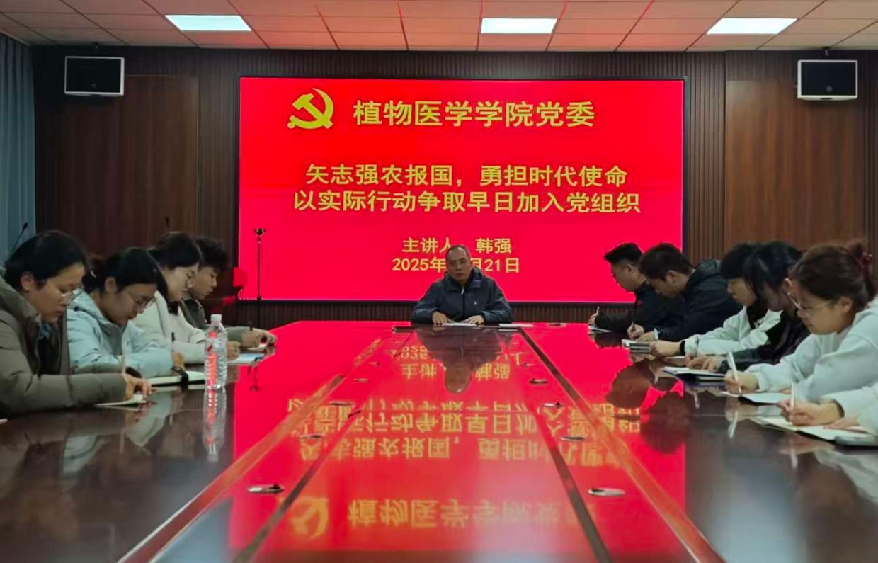 会上,韩强从三个方面为本期党员发展对象讲授专题党课:一是阐明报国强农的时代意义与政治内涵,强调农业是立国之本,青年学子应深刻认识“三农”工作在党和国家事业全局中的关键地位,将个人理想融入农业现代化建设、乡村全面振兴的时代浪潮;二是端正入党动机,摒弃功利化心态,以服务农民、振兴农业为核心追求,用对党的绝对忠诚、对“三农”事业的深厚情怀筑牢理想信念根基;三是鼓励植医学子立足校园学习与社会实践,在课堂深耕农业理论、在实验室攻克技术难题、在“三下乡”社会实践活动中深入乡村一线听民意、解民忧,在乡村振兴的广阔天地中贡献青春力量,在提升专业本领的同时锤炼党性修养。