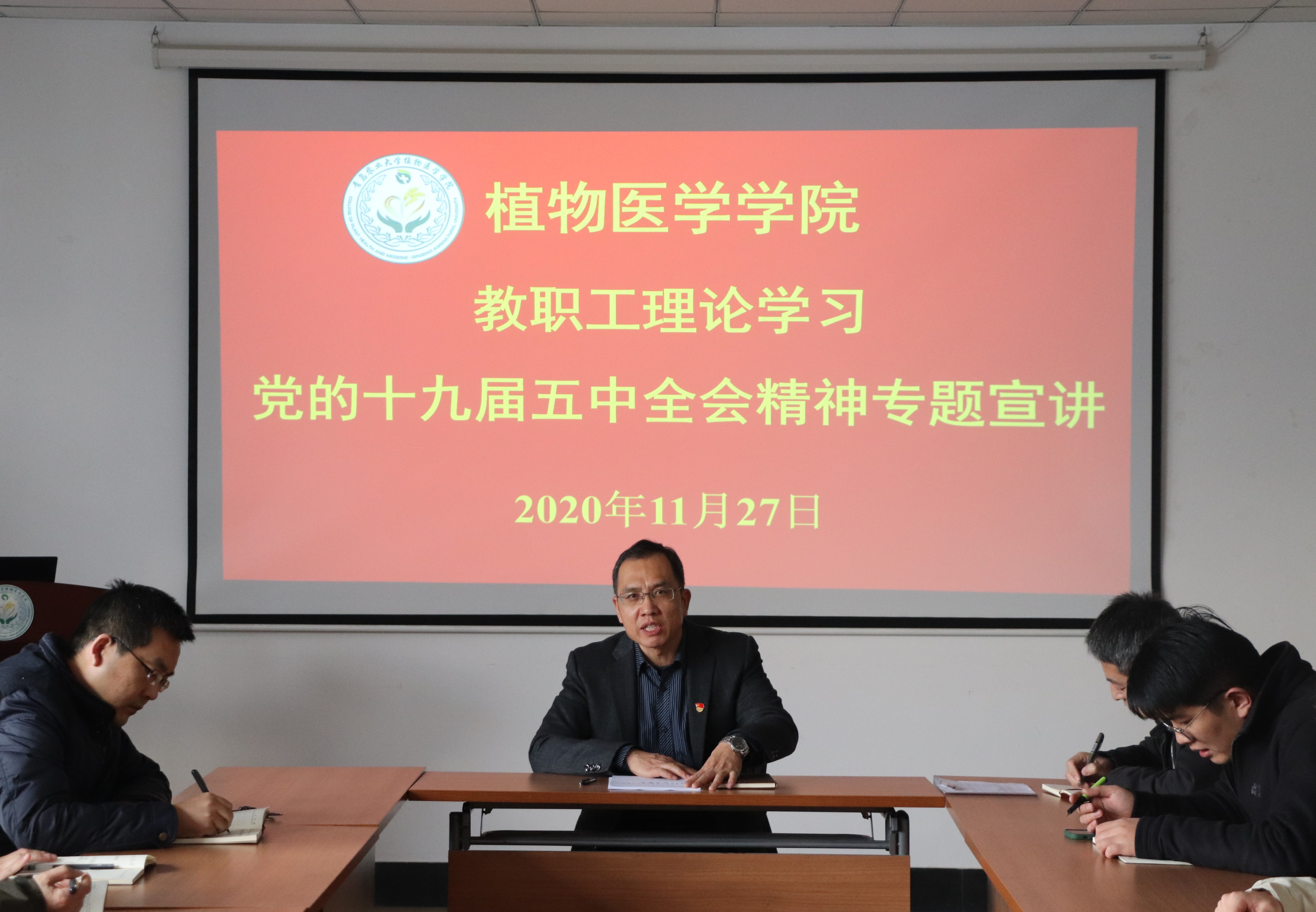 韩强强调,全体教职工要把学习好、领会好党的十九届五中全会精神看作是当前和今后一段时期的重要政治任务,通过集中学习和认真自学,全面认识十九届五中全会精神的重大意义和丰富内涵,深刻领会新发展阶段、新发展理念、新发展格局的战略部署和统筹安排,准确把握全面建设社会主义现代化国家的目标任务和措施要求,切实把思想和行动统一到全会精神上来,进一步强化“四个意识”,坚定“四个自信”,坚决做到“两个维护”,始终坚持以立德树人为根本,以强农兴农为使命,高质量完成好人才培养、科学研究、社会服务等各项任务,积极服务农业农村现代化和乡村振兴战略实施,努力为全面建设社会主义现代化国家新征程做出新的更大的贡献。