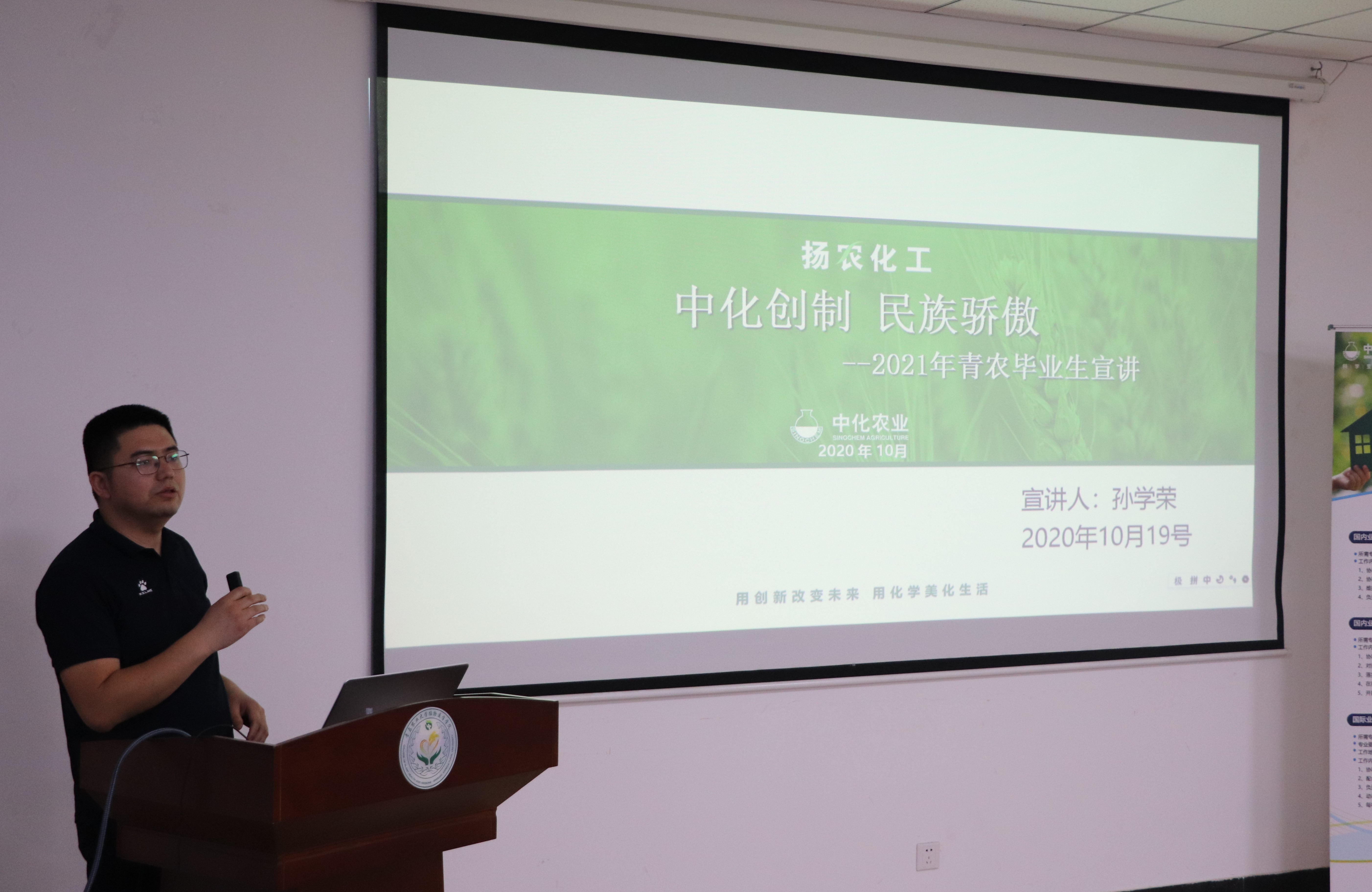 10月19日,beat365亚洲体育官方网站邀请中化集团有限公司中化作物于公司会议室召开招聘宣讲会,公司校企对接负责人孙学荣主讲,2020届毕业本科生及研究生参加。