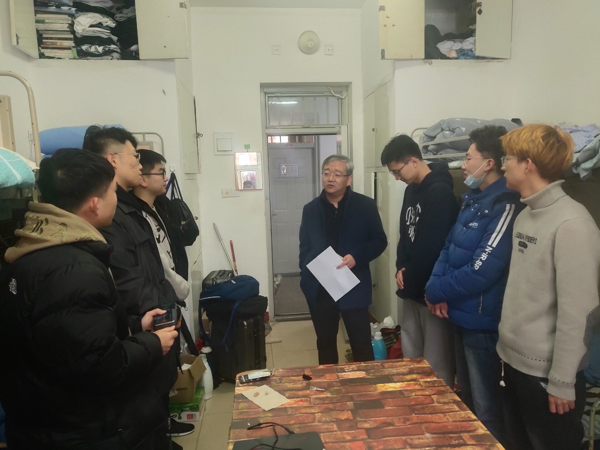 在走访活动中,韩强与同学们亲切交流,倾听同学们寒假期间的感受。他希望同学们能尽快调整作息时间,转换角色,适应新学期,尽早地进入学习状态。此外,他还强调,同学们刚来宿舍,床上用品应及时换洗,被子要晒,要时常通风,保持室内空气流通。平时在宿舍应注意安全用电,杜绝无人充电现象。在外注意自身安全,戴好口罩,服从公司疫情防控安排,提高自我安全防范意识,遇到困难要及时和辅导员、班主任老师沟通交流。