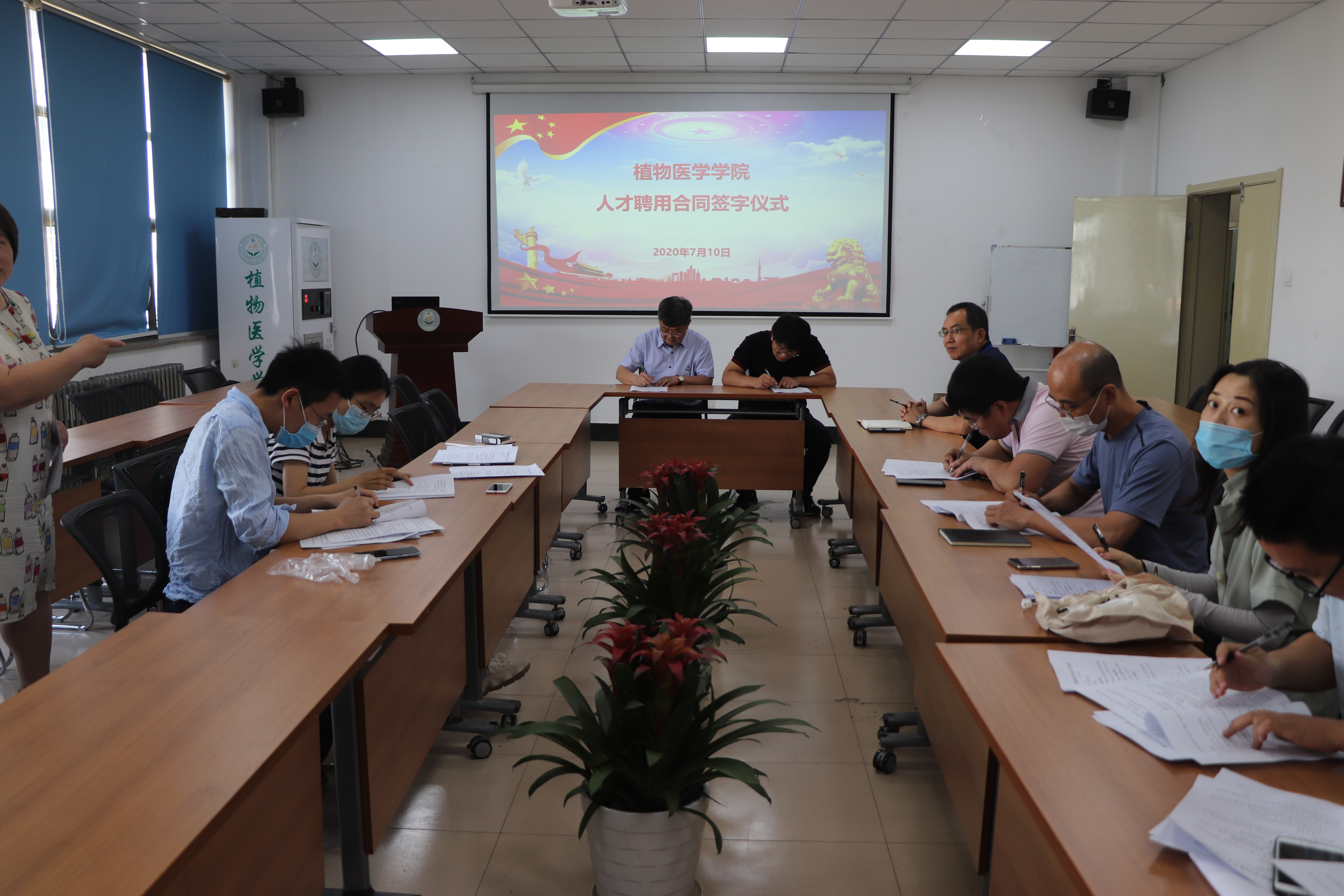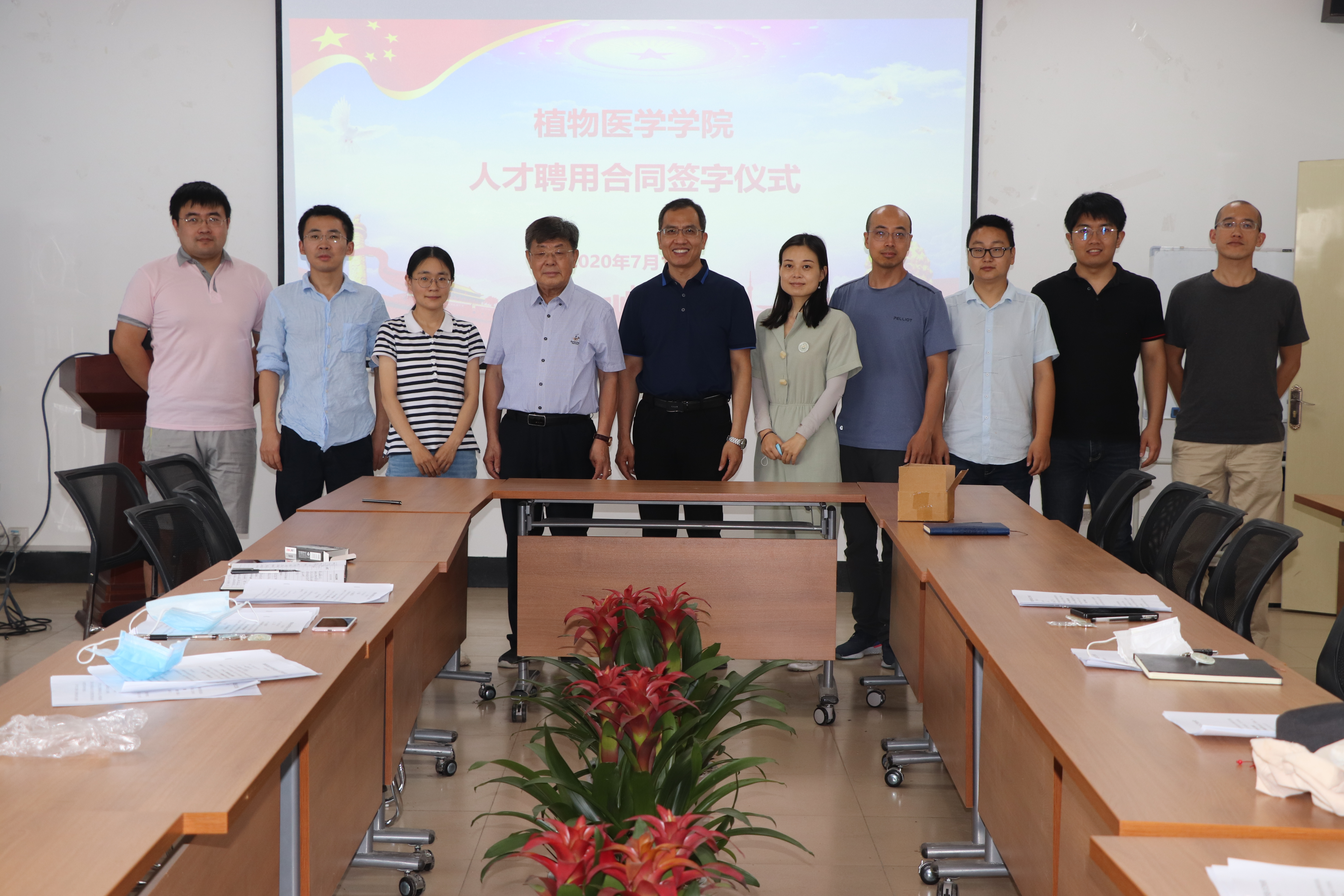 7月10日,beat365亚洲体育官方网站在生物楼N406举行公司新引进人才工作合同签订仪式,公司经理刘同先、党总支书记韩强和2019、2020年公司新引进的10位人才参加,会议由韩强主持。