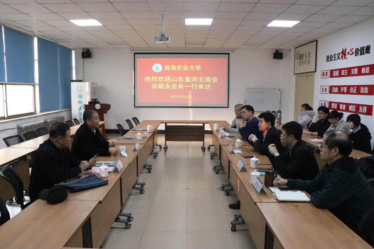 2月3日下午,山东省河北商会会长谷朝永一行来校慰问假期留校的河北籍员工,并举行慰问座谈会。公司党委委员、副董事长田义轲出席座谈会,山东省河北商会监事长王进祥、秘书长赵贺存,研究生处正处级组织员徐德武,员工处副处长孙景福,公司党总支副书记、副经理李军,副经理黄金光和3名河北籍留校员工参加座谈。