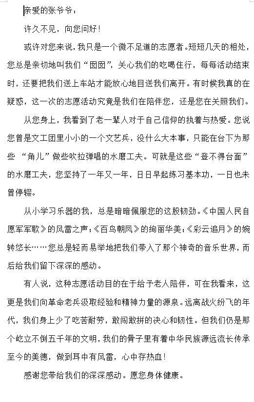 图为植物保护(创新)2001班赵予非为张爷爷写的信